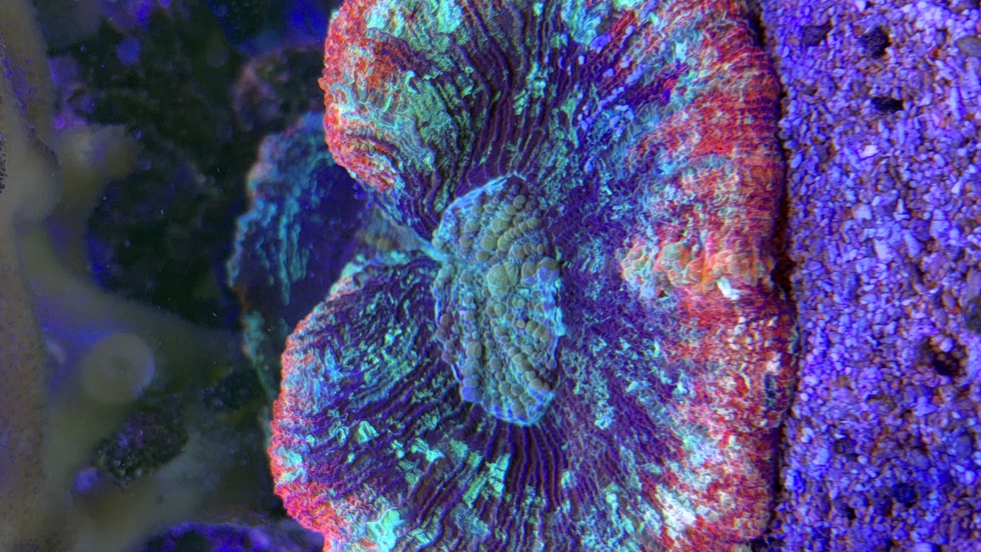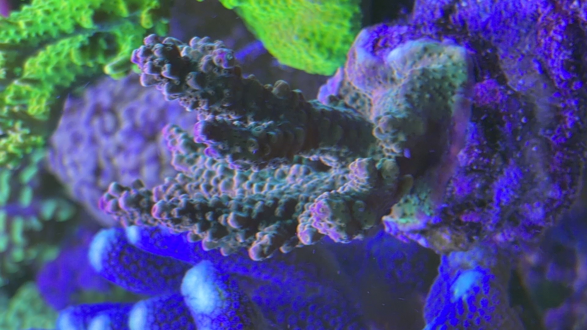 Nogle a mine acroporaer er begyndt at få bedre farver og polyp udfoldelse om natten efter jeg opdagede min bummert med den forhøjet salt.