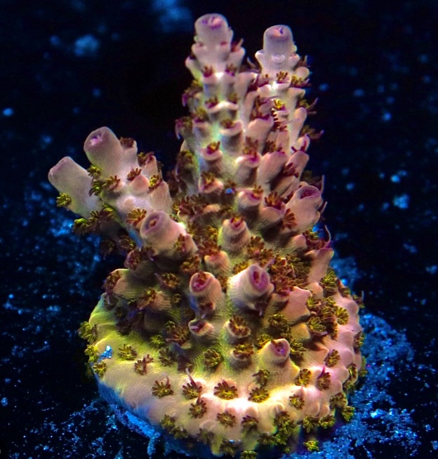 akvarie i ca 4 måneder, ov visse var ved at få farve, og nu kommer de over i mit, og nej de ser ikke rigtig ud som på billederne. De kommer få deres helt egen Kessil A500X på 20-30 cm vand, rundt om dem får de flow af en MP40 og en MP60.