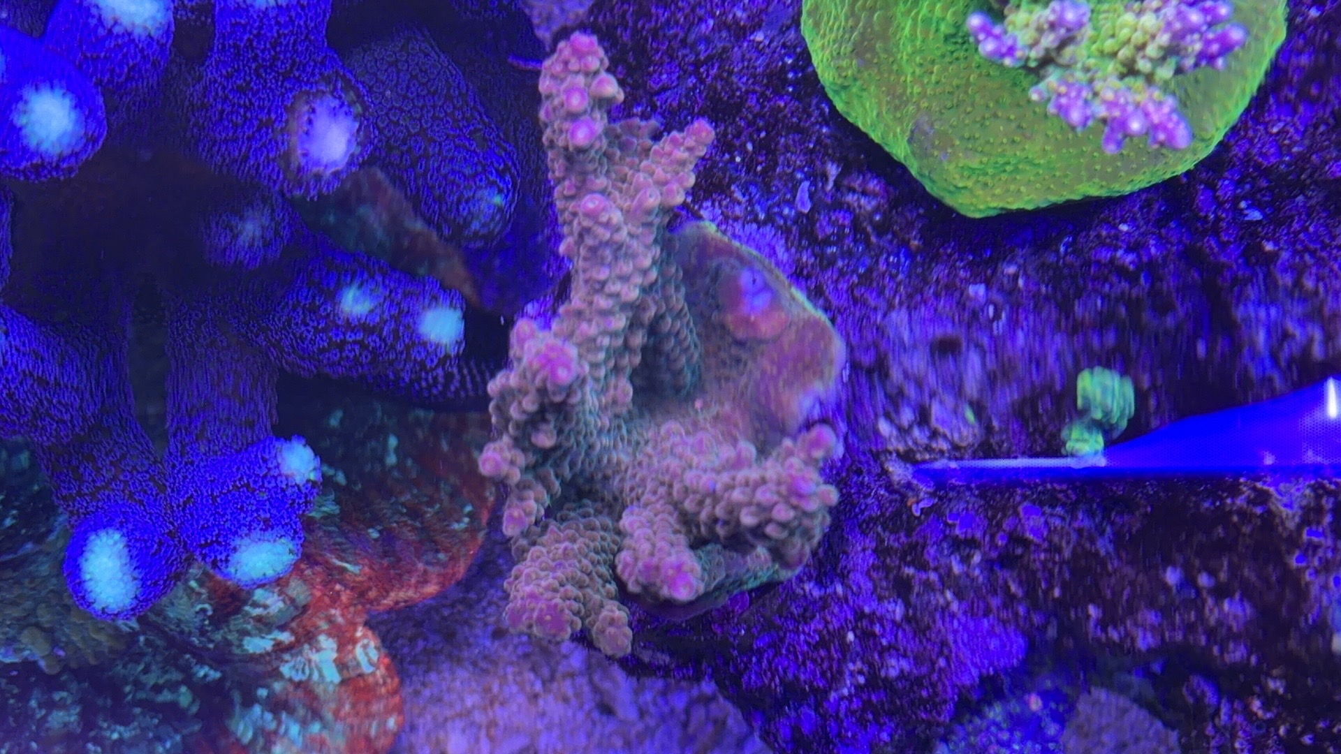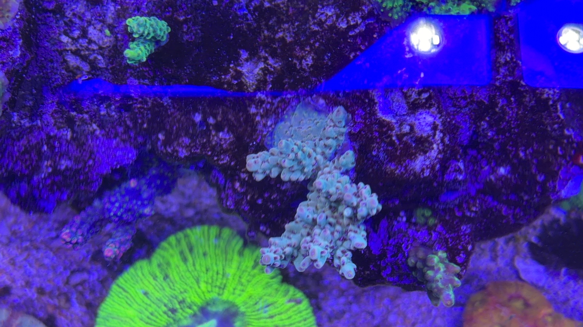 Nogle a mine acroporaer er begyndt at få bedre farver og polyp udfoldelse om natten efter jeg opdagede min bummert med den forhøjet salt.