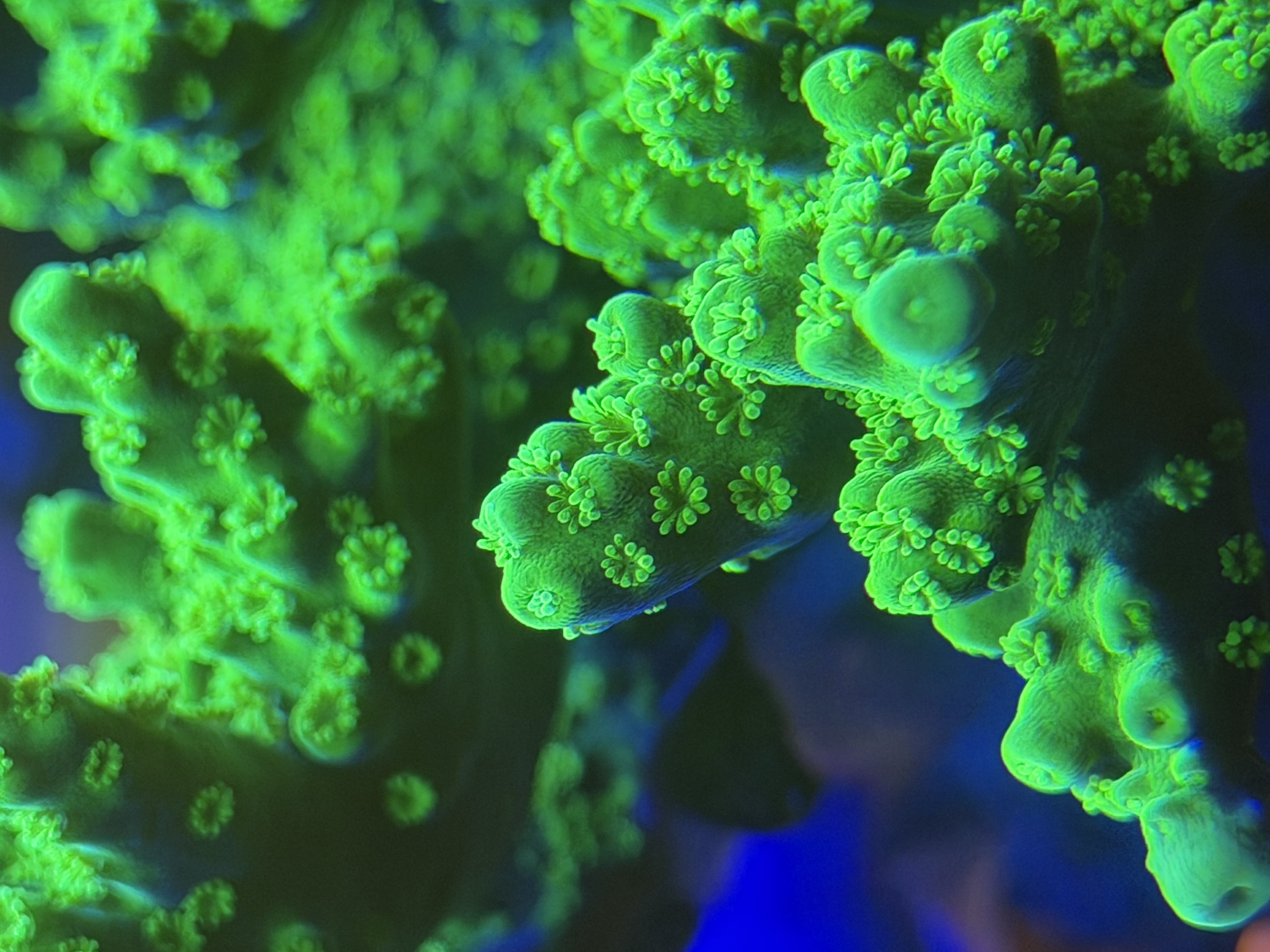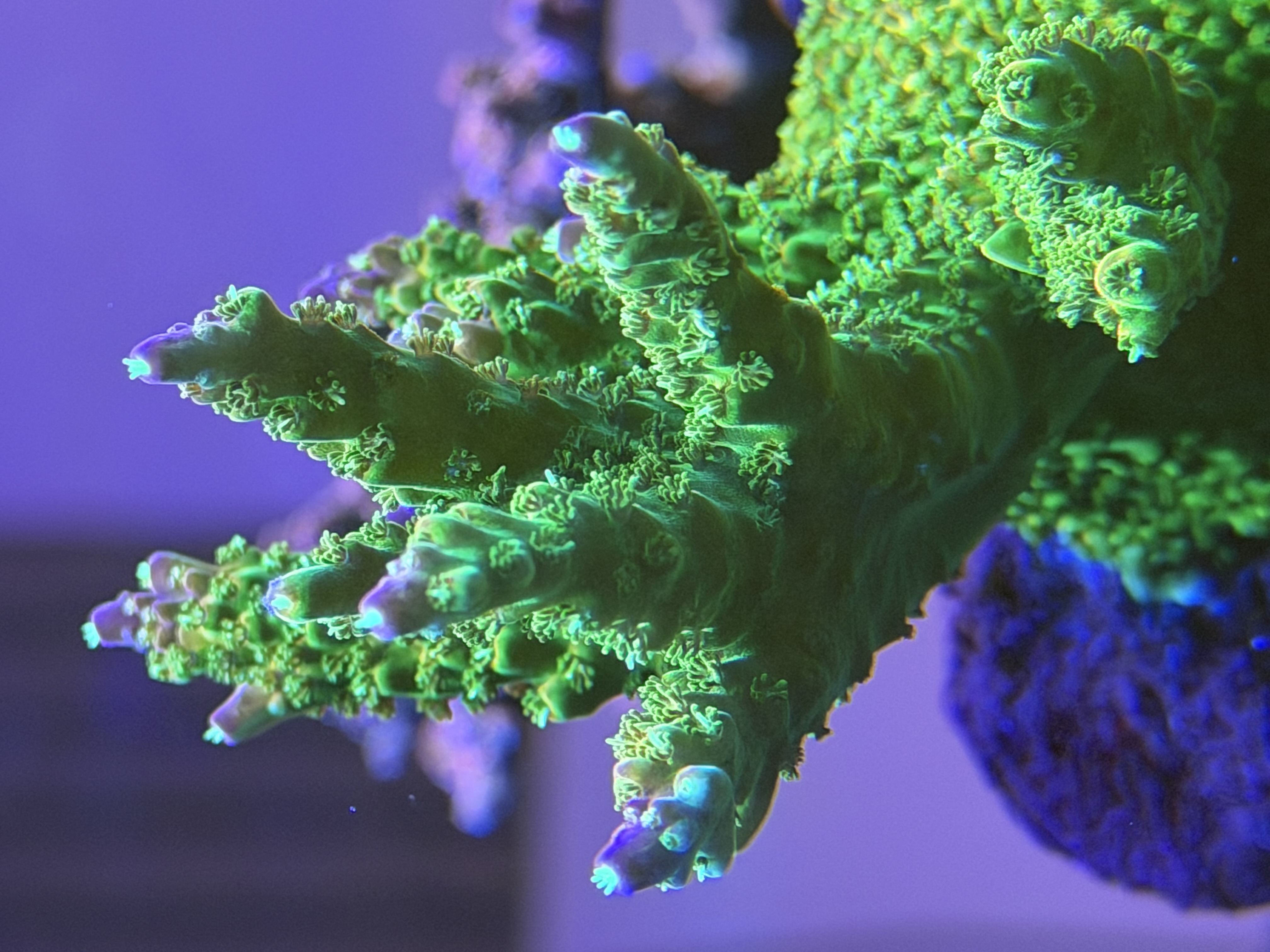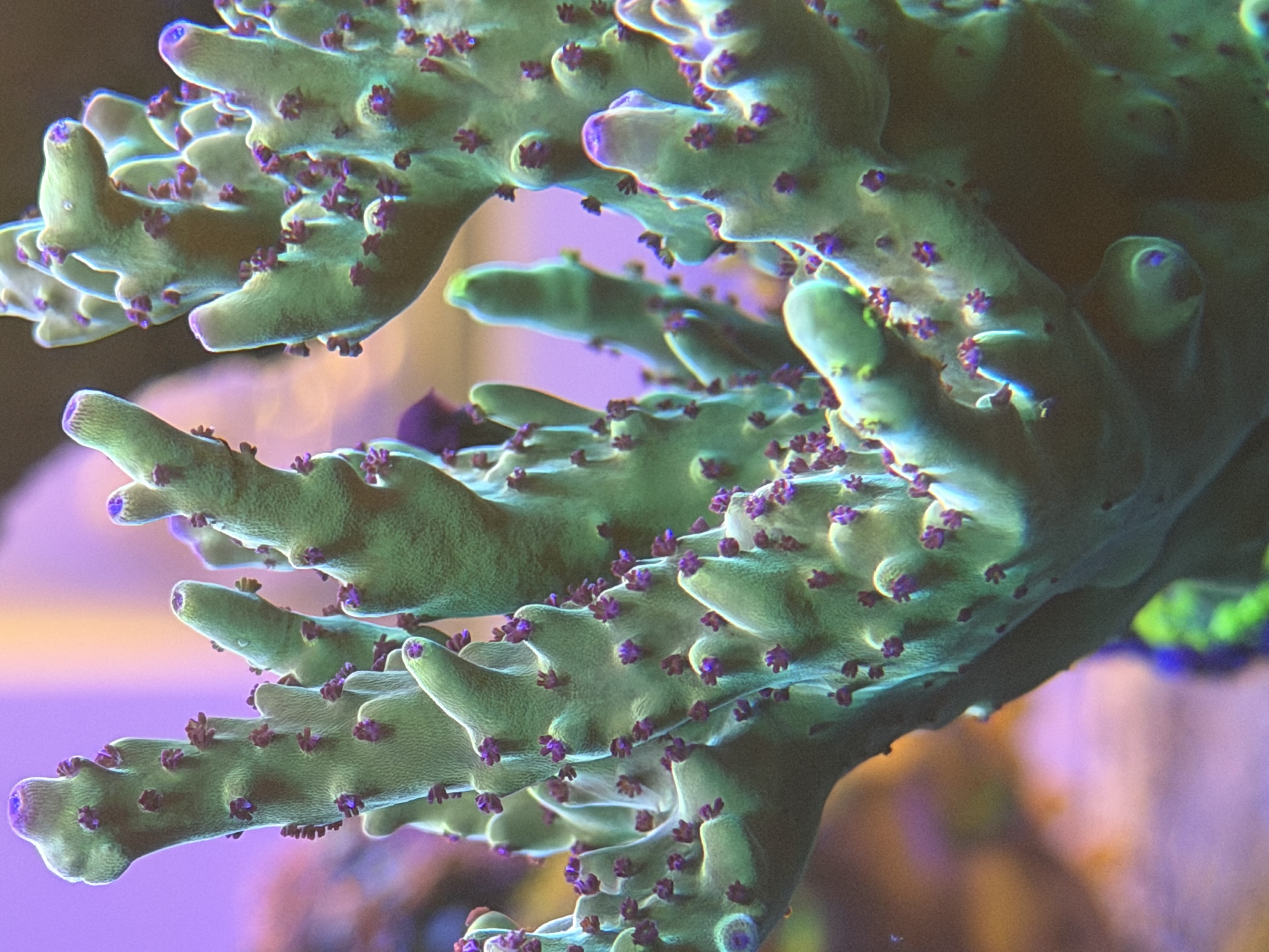 Der er dog noget vej endnu for alle farverne kommer igen, men min Acropora SR Moonwish Ultimative viser virkelig gode tegn på vækst igen