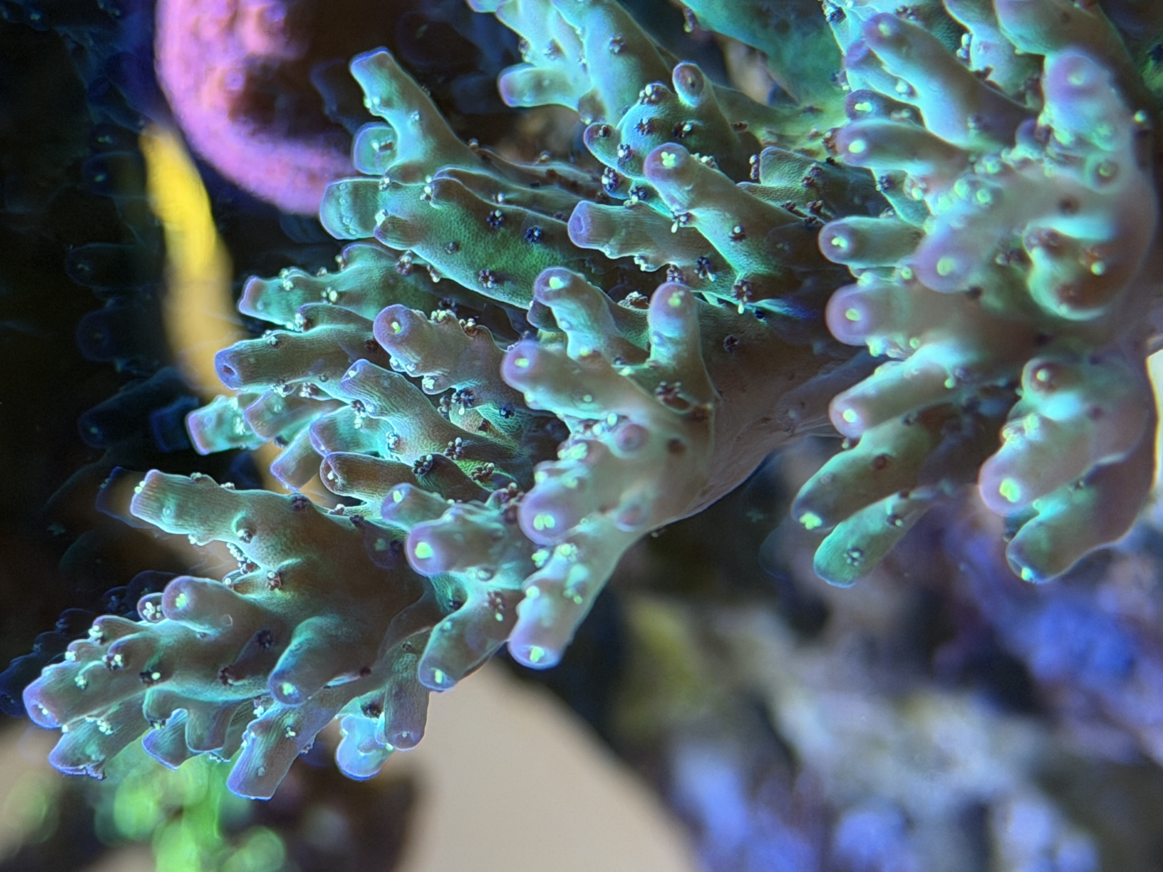 Der er dog noget vej endnu for alle farverne kommer igen, men min Acropora SR Moonwish Ultimative viser virkelig gode tegn på vækst igen💕