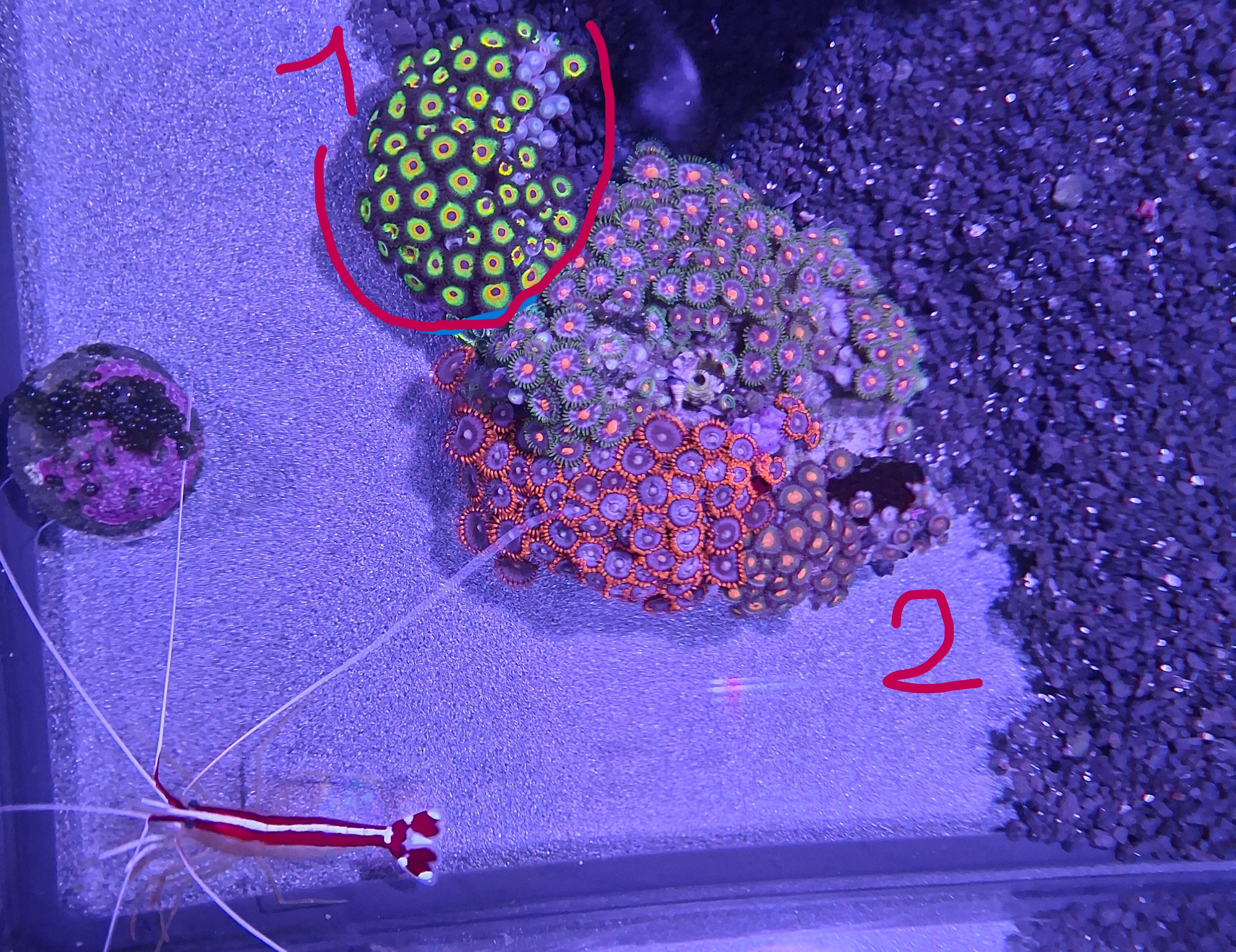 1x ca.10+ x 10+ cm med forskellige Zoa'er grønne/gule/enkelte orange (250,-) (intet nummer, billede 2)