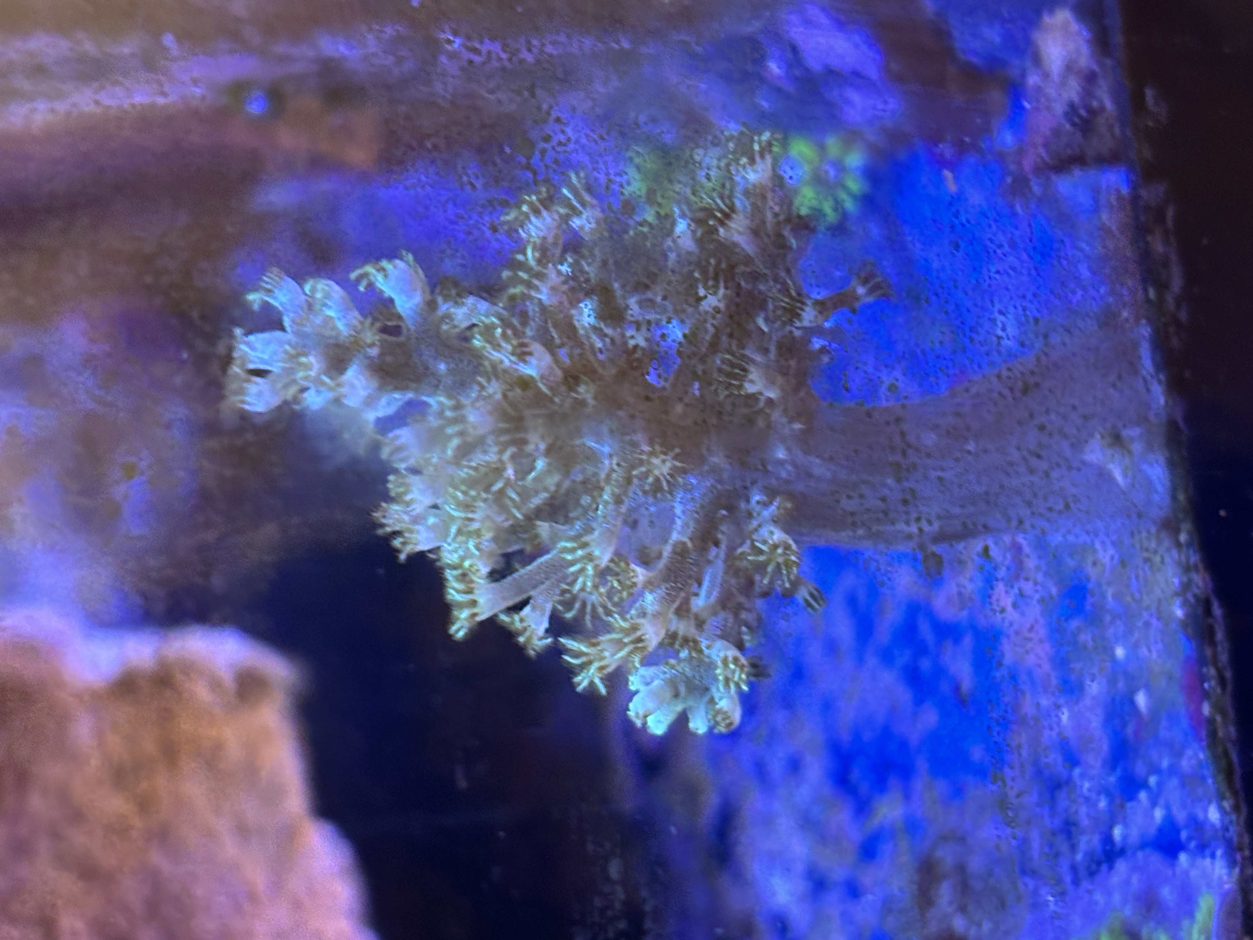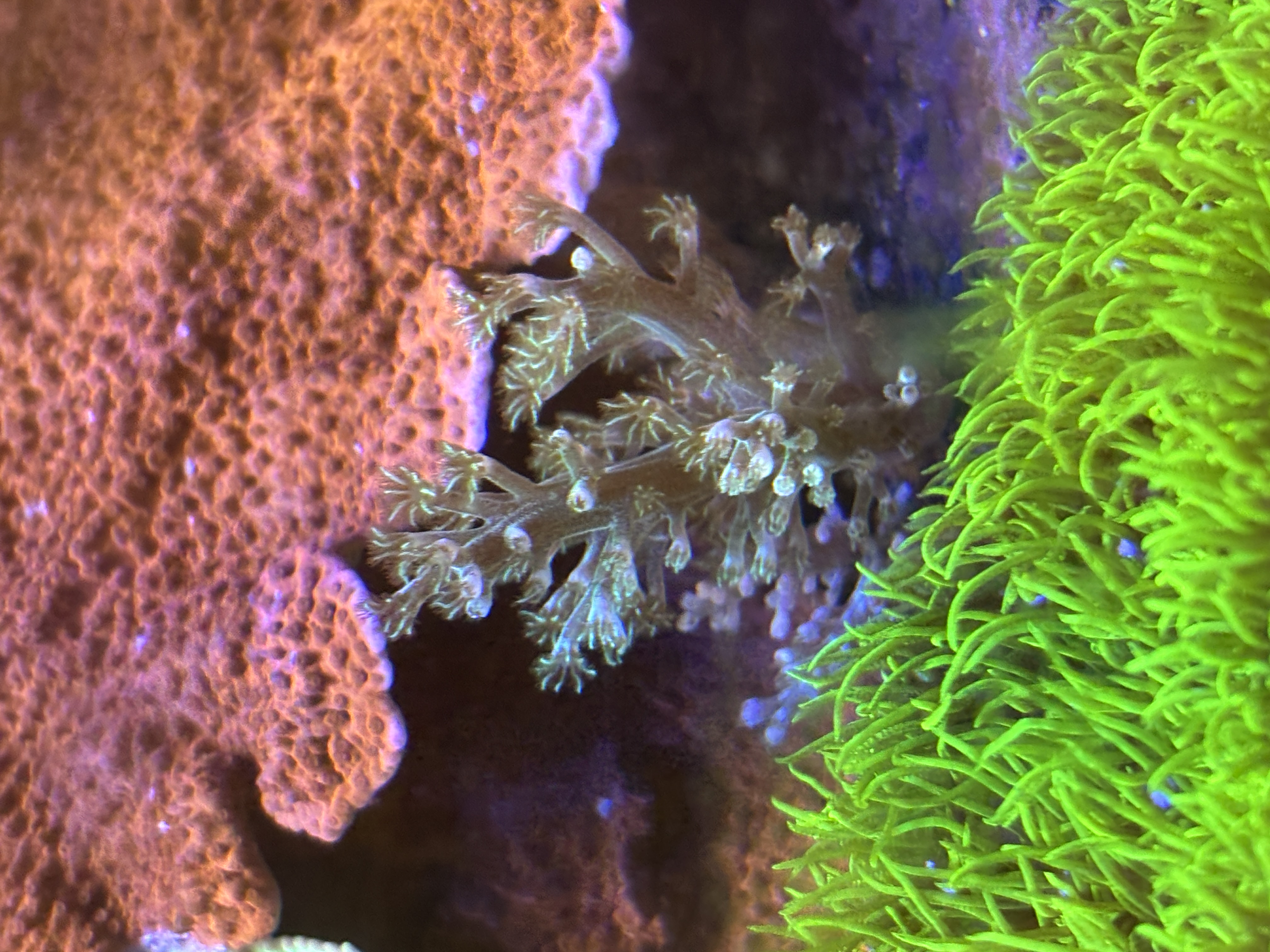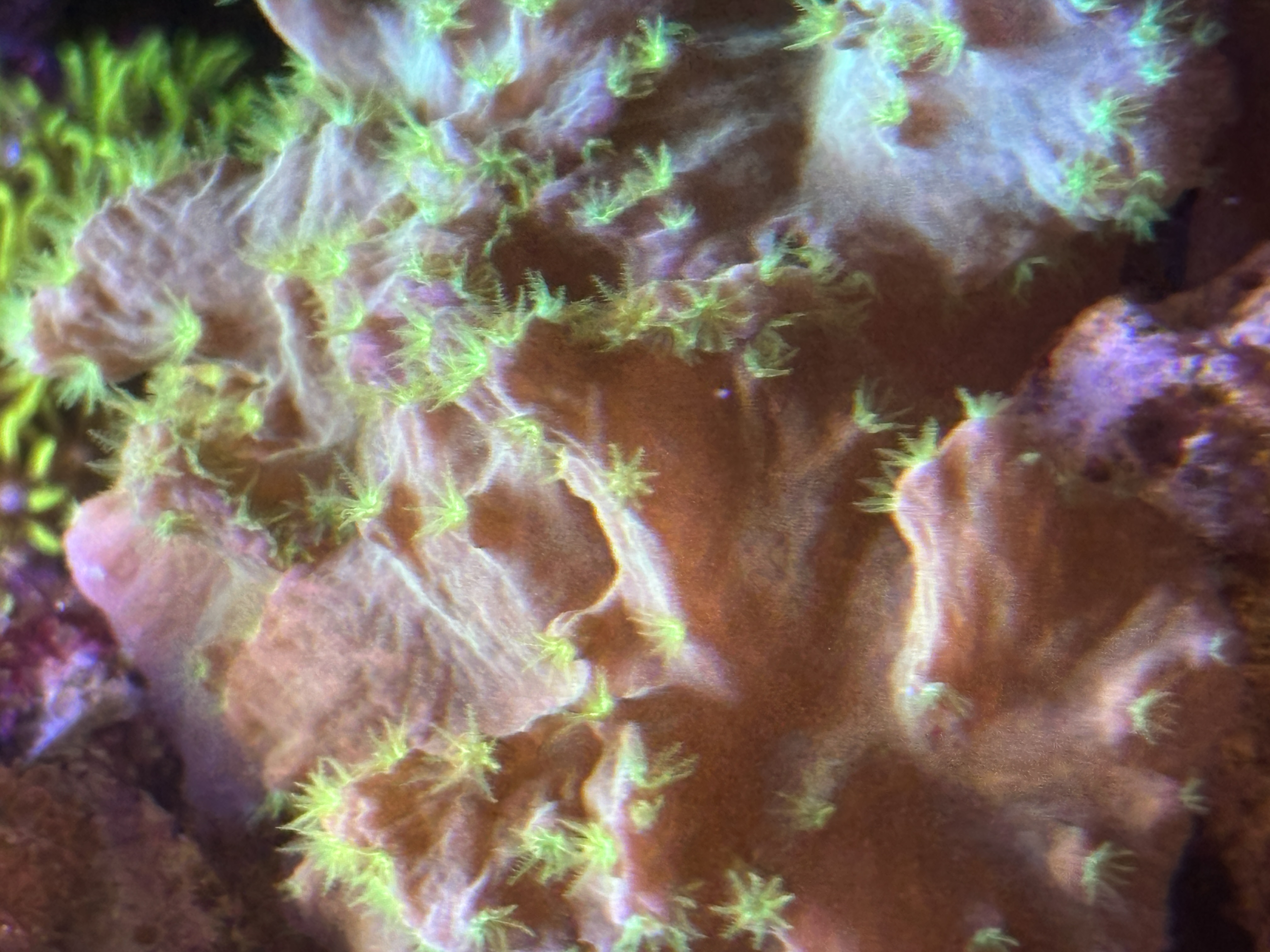 Ukendt blødkoral (lyse gul/grøn) gule spidser 3-5 cm 40 kr - 5-8cm 70 kr