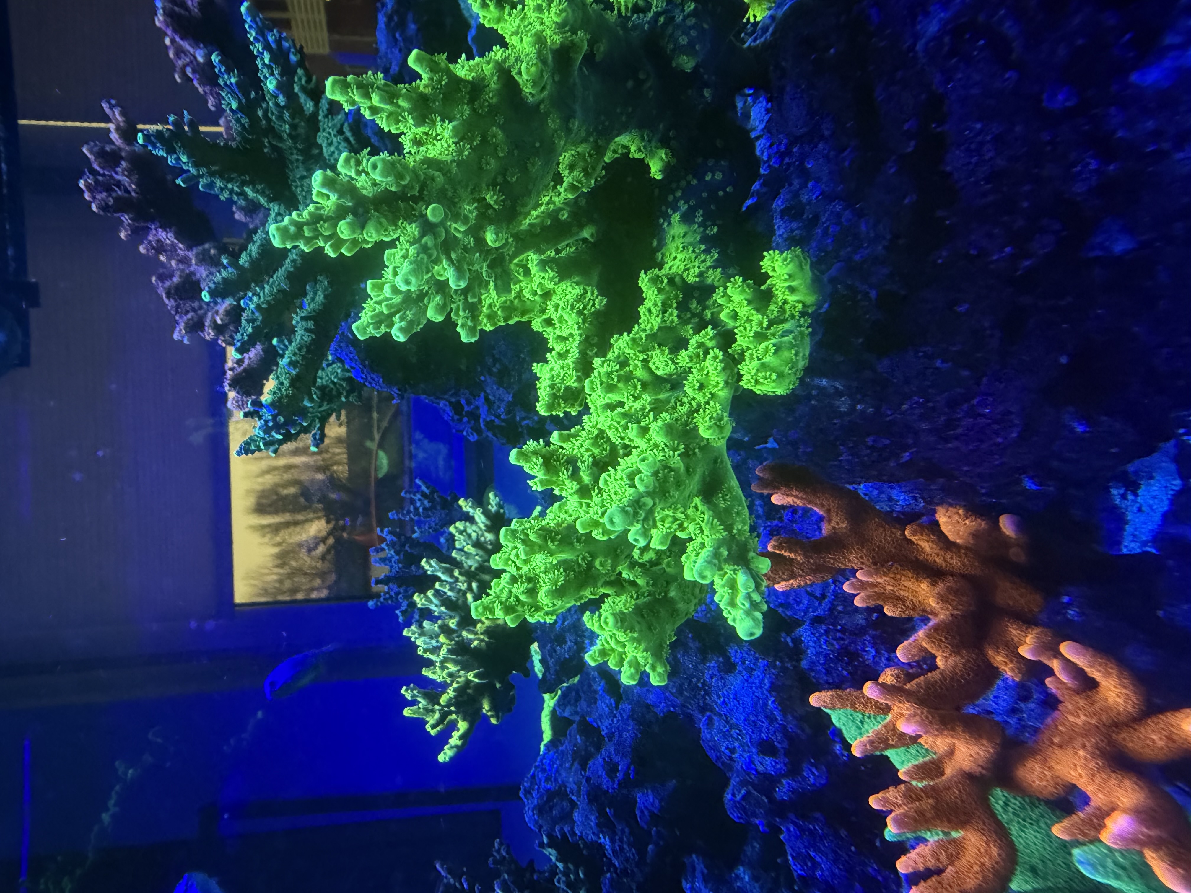 Flowet på mit setup har jeg ændret en del her på det sidste. Syntes ikke selve bølgebevægelse gav et ordentligt flow ift Acroporaerne, men ligger stadigvæk omkring 60-80x turnover uden direkte flow på korallerne. Går jeg højere trækker mine Tenius polypperne sig, mens milleporaerne stråler af glæde over det ekstra flow.