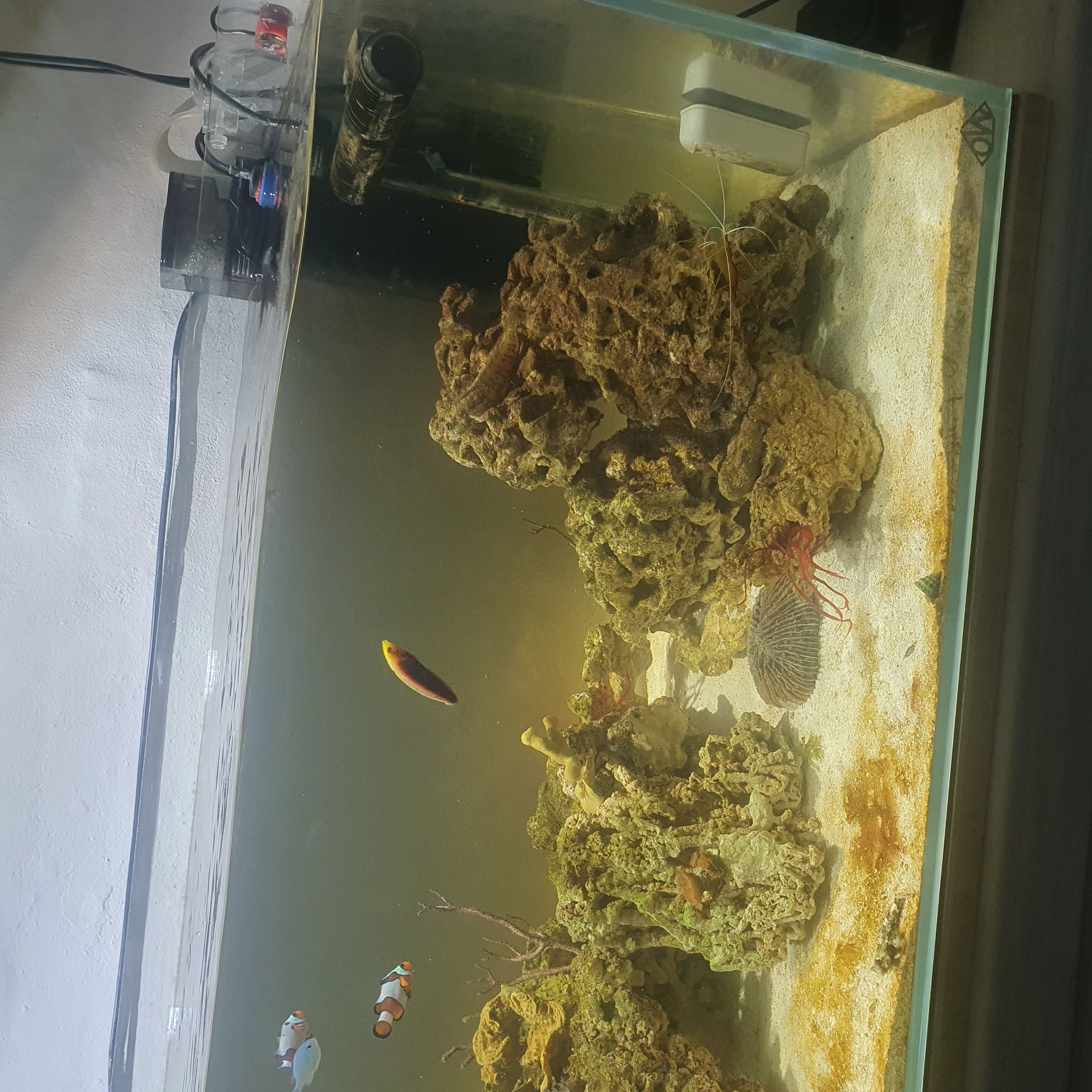 Det så resulterede i et kæmpe alge boom og en skummer der havde skummet over ned i akvariet!!!