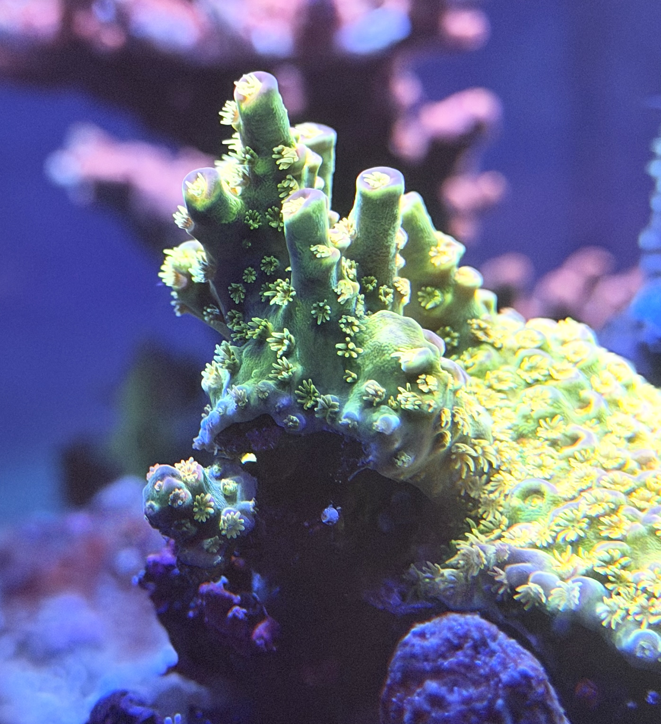 I stedet for at kæmpe med en acro eller en anden koral type, så overvokser de den bare. Det går snildt når man vokser så hurtigt.