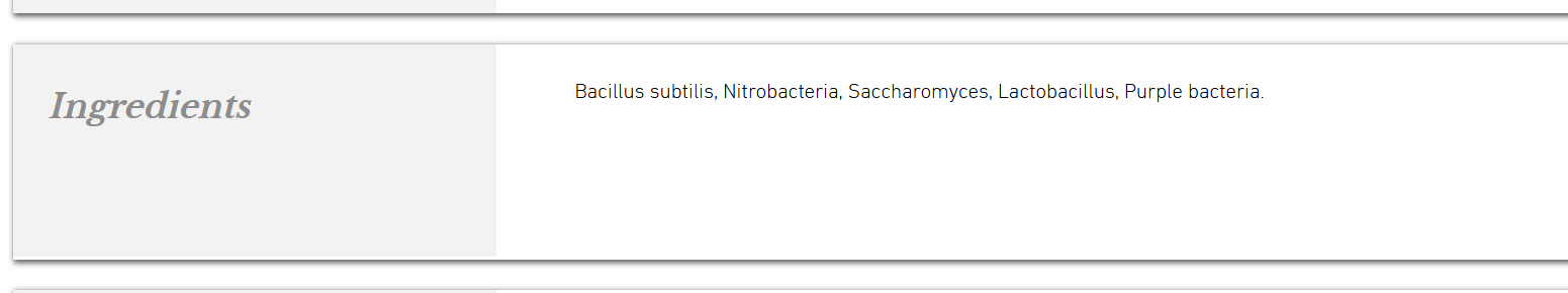 Noget litteratur (fra andre udbyder) eller TM selv, der har lavet tilgængelige undersøgelse af hvad der er i deres bakterie produkter (måske kan der være noget forretningsmæssigt der gør man ikke vil dele den gode ide).