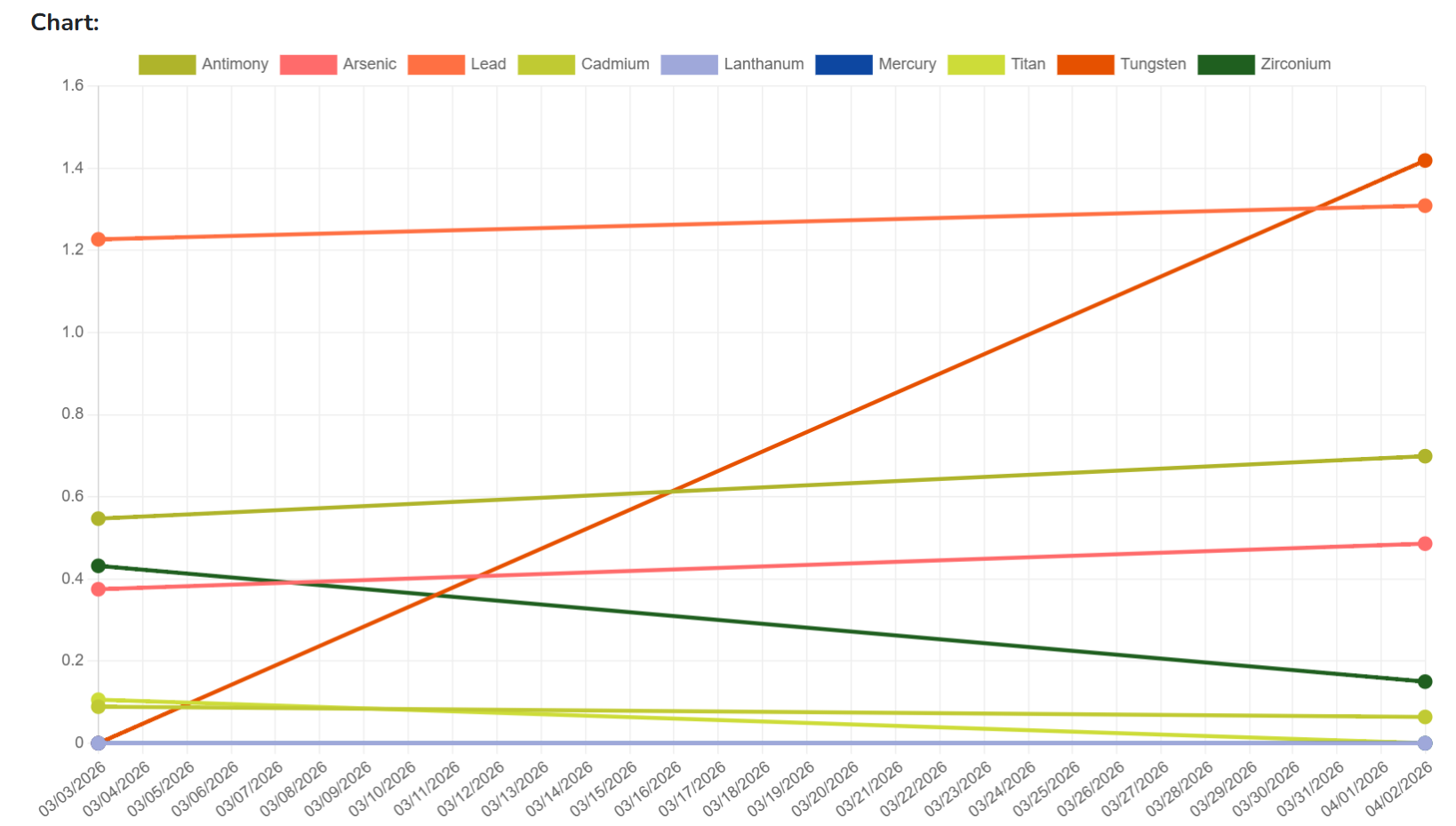 Oversigt over stofferne under 2µg Jeg synes ikke mit medie optager dette, og jeg skal undersøge om det er metal (Spindlen), som det kommer fra. Så byd endelig ind, hvis i har oplevet forurening fra metal