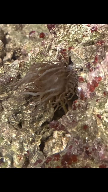 Er startet op med 2 større levende sten, der blev taget op af et aktivt akvarie hos Tropeland i Skanderborg. De fulgte lidt småkravl med stenene bl.a. snegle, små "søstjerner" og et lille bløddyr af en slags med rigtig mange ben. De er stadig i live efter 6 uger. De 2 store levende sten udgør størstedelen af mit "rev", hvis man ser bort fra bundlag.