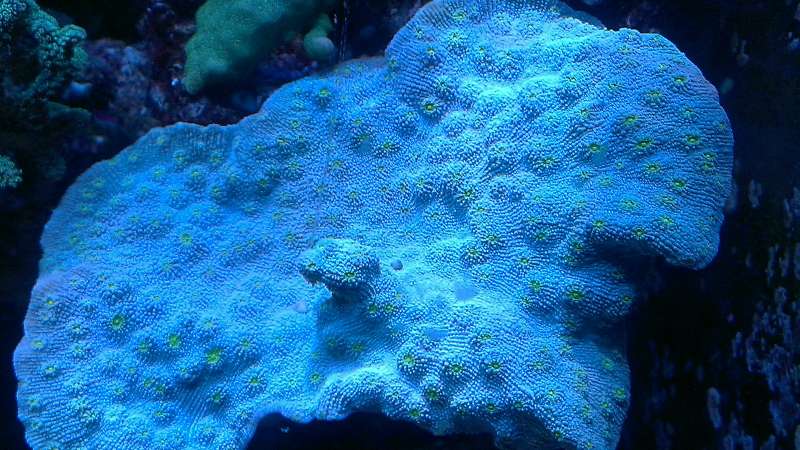Echinophyllia vokser så den "smelter" ned af stenen, substratet eller hvad der er.. Den er tykkere og mere kødfuld og har større og færre hoveder og så kommer den i alle farver og kombinationer man kunne forestille sig