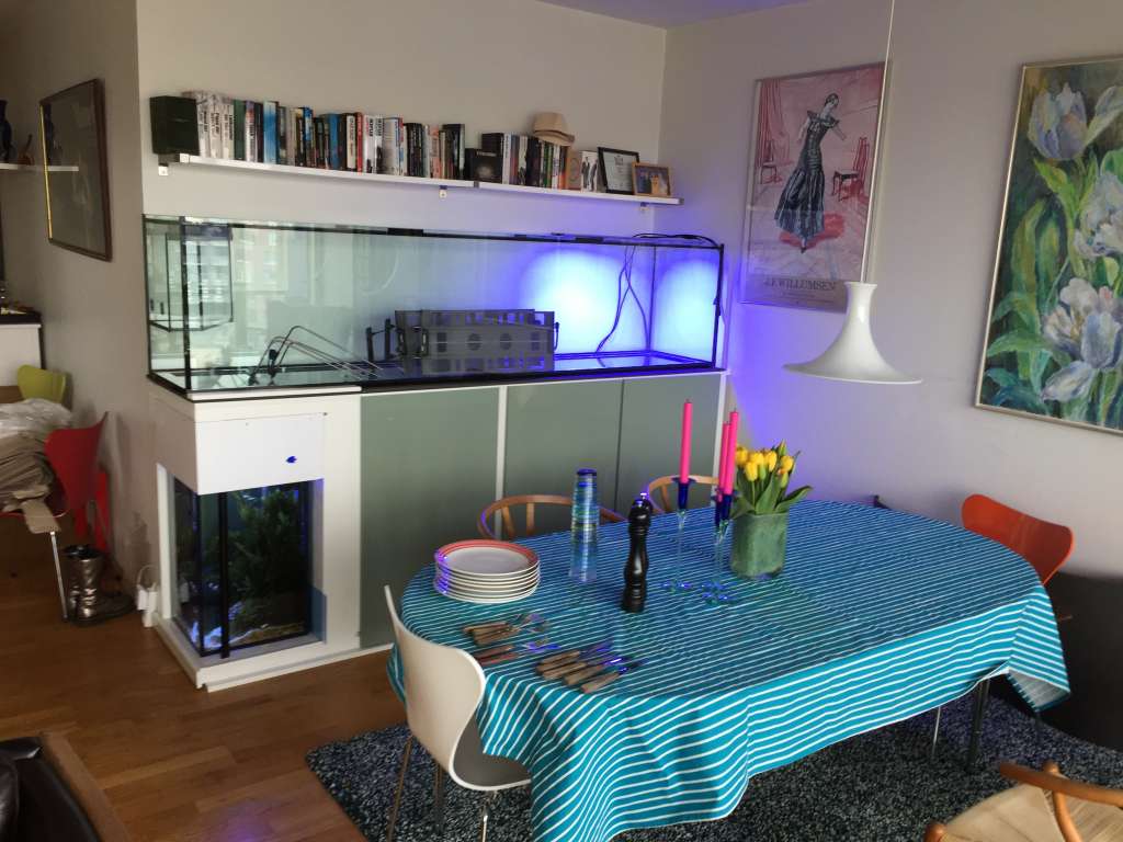 Da jeg boede på Nørrebro, der var INGEN elevator, og så er et 576 liters akvarie godt nok tungt at slæbe op, og ned igen, samt nyt op og ned igen senere. Der behøvede jeg ikke bukke mig ned for at klø mig under fødderne