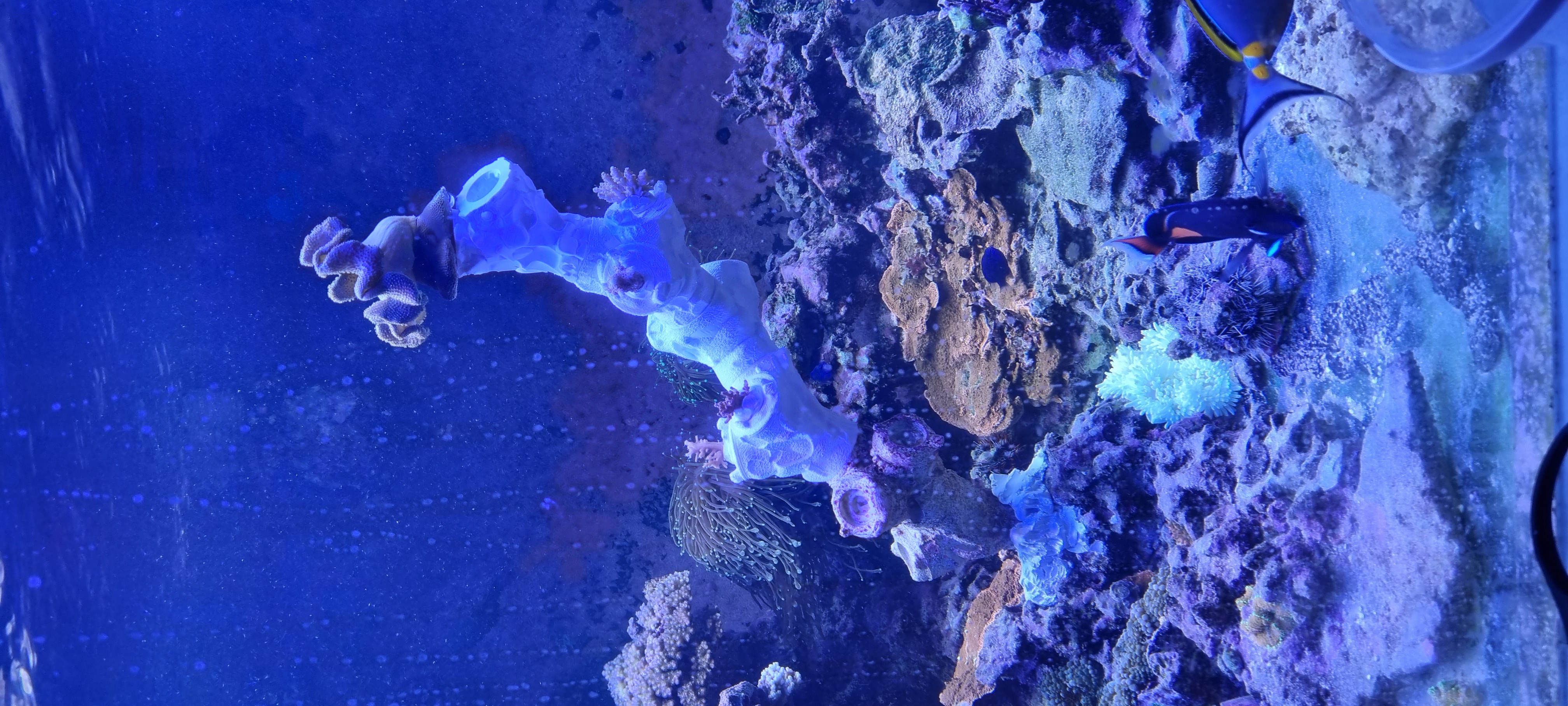 Med Sicce lamper i akvariet er problemet med partikler tilbage i akvariet, skal montere "malerfiltret" jeg tidligere havde over akvariet ned i skummersumpen, hvor jeg har monteret en billig kvalitetspumpe 4k BLAU som pumper direkte retur til DT, så jeg spipper have et filter i DT.