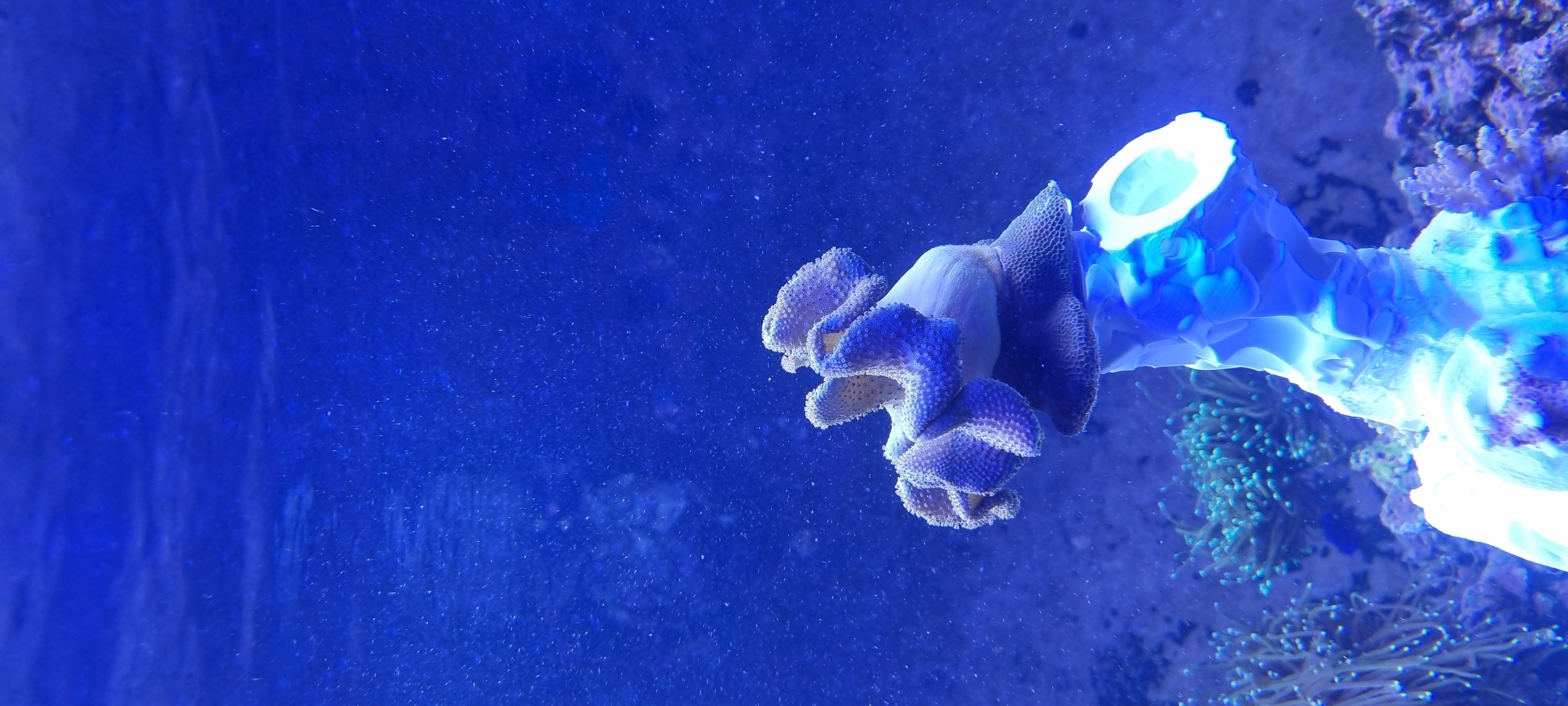 Men i weekenden fik jeg hjem Sarcophyton samt 11 små fragger SPS, og det gør omdt i hjertet (og økonomien) at se mine kejserer stresse korallerne så meget som de gør. PE kan jeg slå op i DBA, så et frø har sat sig og selv om det gør ondt må jeg nok træffe en beslutning snart. Min blueface (den store) starter jeg med 100%, det er den som jeg ser nappe mest, som i hele tiden.