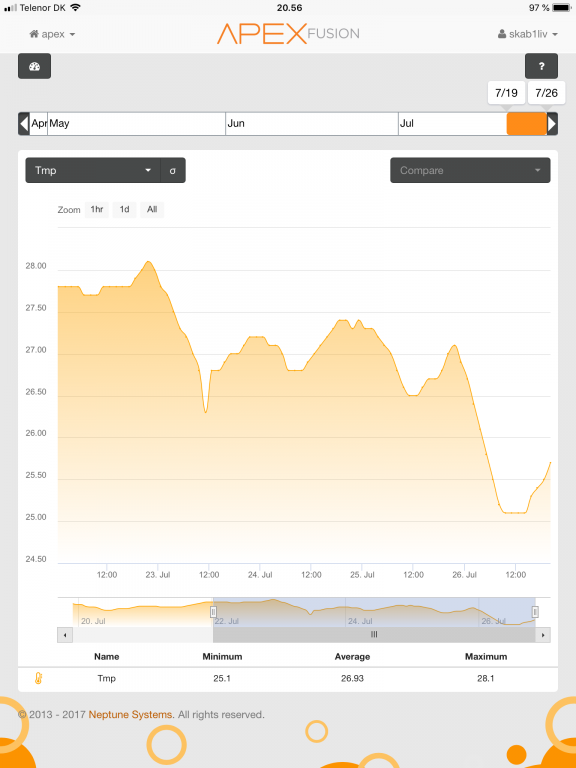 Har holdt nøje øje m pH værdien gennem hele forløbet, den har svinget lidt og er faldet en lille smule hen over perioden. Fra 8.15 i gns til 8.09. Udsving hen over døgnet på ca 0.15.