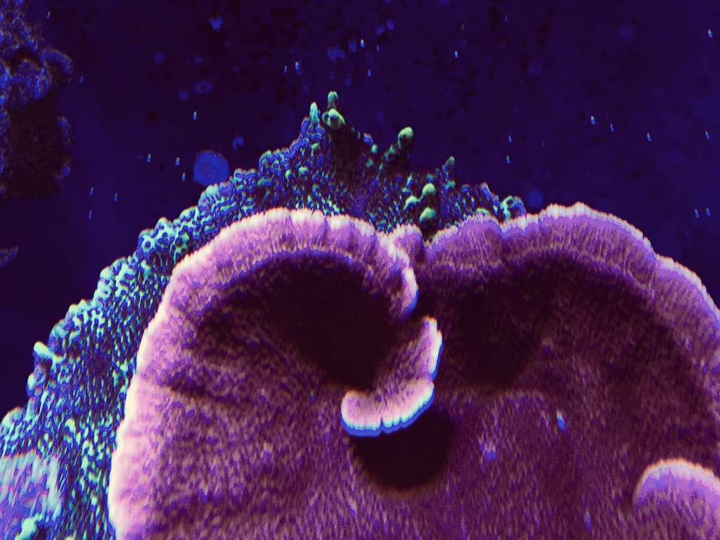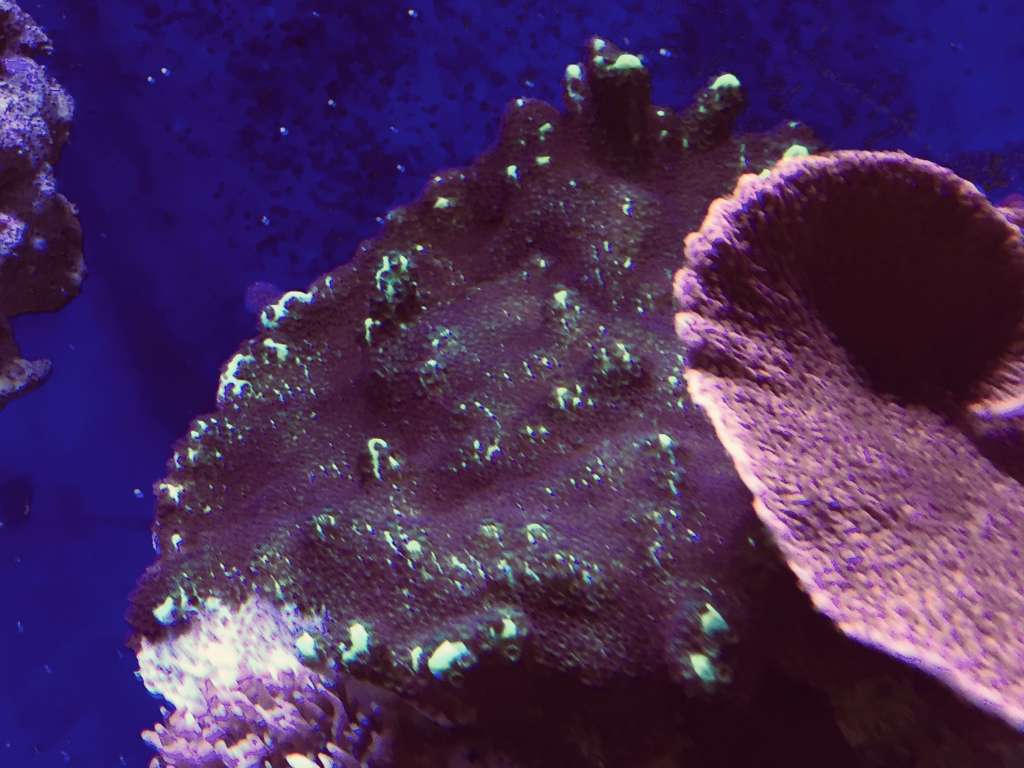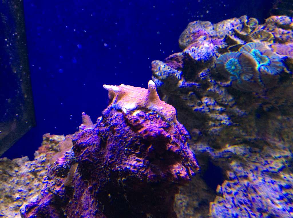 Hmmm, underlig måde dine koraller vokser på, mine vokser og vokser på stenen de er limet på til de begynder at vokse nedaf, derefter kommer der skud. Min "Forest Fire" har en fod på ø8 cm eller noget inden den begyndte at skyde.