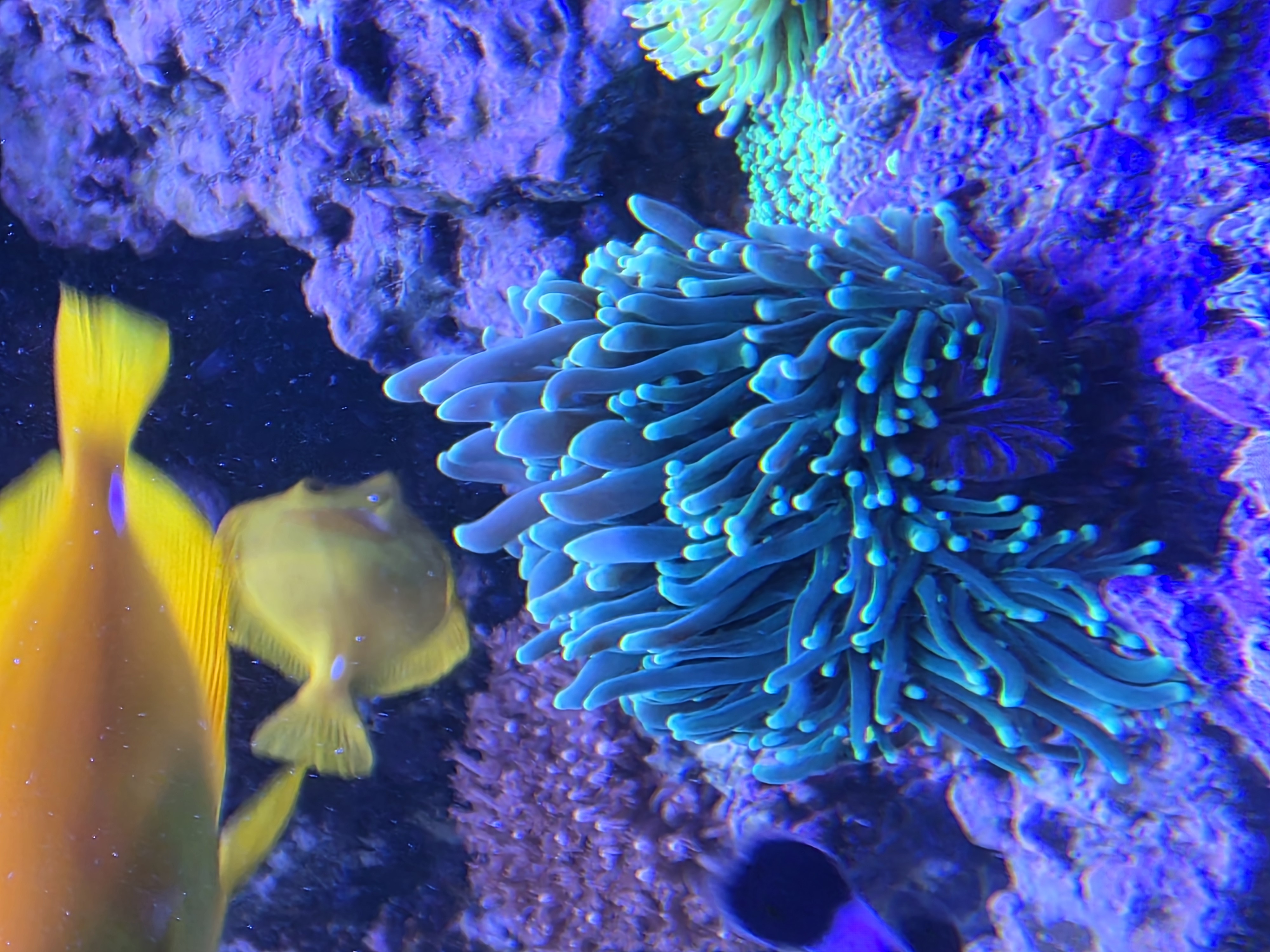 Har som et andet forsøg hængt op mine Kessil Kina kopilamper op længst tilbage i akvariet, den ene specifikt over min store Ritteri anemone (30-40 cm stor) og det er nok det bedste jeg har gjort i akvariet på meget lang tid.