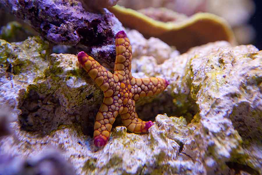 Jeg må efterhånden nok erkende, at min citrongoby er M.I.A. (missing in aquarium). Jeg har simpelthen ikke set den siden den kom i baljen. Ellers har alt og alle det godt. Min lille anemone og min ene wurdemanireje har fundet sammen under en sten. de er svære at se, men de er der. Den anden reje har jeg ikke set endnu. Den er også meget lille. Til gengæld får i lige et par billeder af min Palet og en enkelt koral.