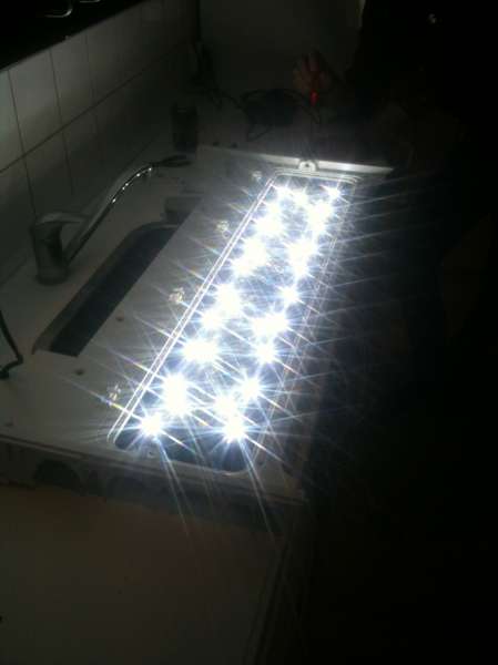 Det ser bare super godt ud! Gider du ikke skrive hvor mange LED'er du har af hver farve? Skal bruge samme kit over mit 250 liters, så det kunne være rart med lidt inspiration.