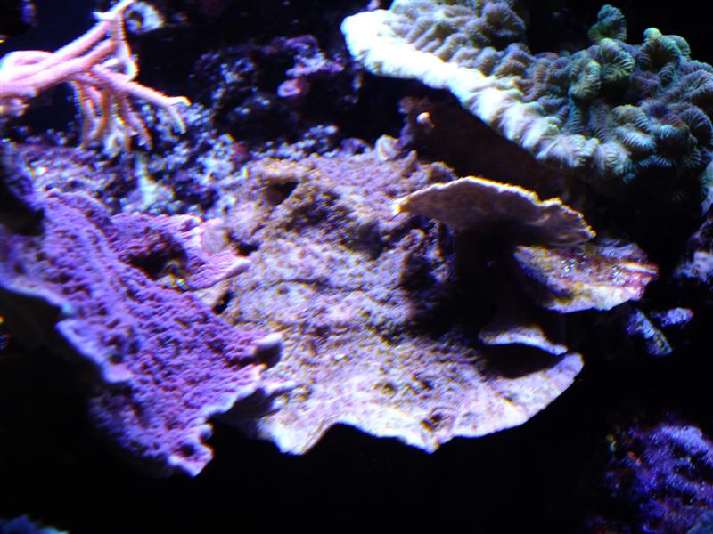 Det der også er mærkeligt er at nogle koraller ser ud til at have det fint. Min lilla plademonti, ser f.eks. ud til at have det super godt og vokser vildt, selv om de er placeret stort set samme sted som den orange.