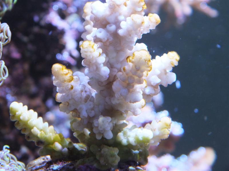 Det har ikke gjort den mindste forskel på mine SPS koraller. Jeg købte endda i starten af denne uge nogle helt nye superflotte Acroer til erstatning for dem jeg smed ud. Efter 2-3 dage havde de allerede fået begyndende brune belægning på spidserne, og dagen efter var det meste af dem hvide.