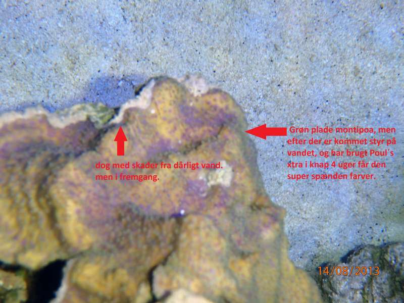Så er der lidt nyt og begynde farve udvikling på koraller der var blevet kedlige. begyndt at bruge Pohl´s xtra, kz Amino acid og kz Spongepower.