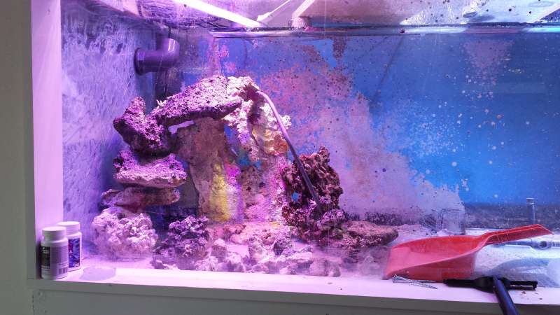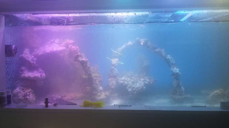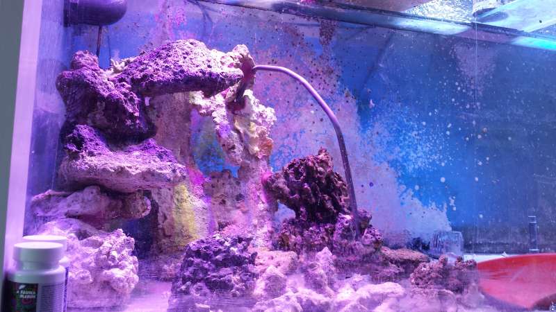 Jeg har jo stadig 1500 liter saltvand der er velkørende så håber ikke og planere at få i vand mandag/tirsdag og koraller senest en uge efter. Min bror kommer og han ville elske at hjælpe med at lime osv.