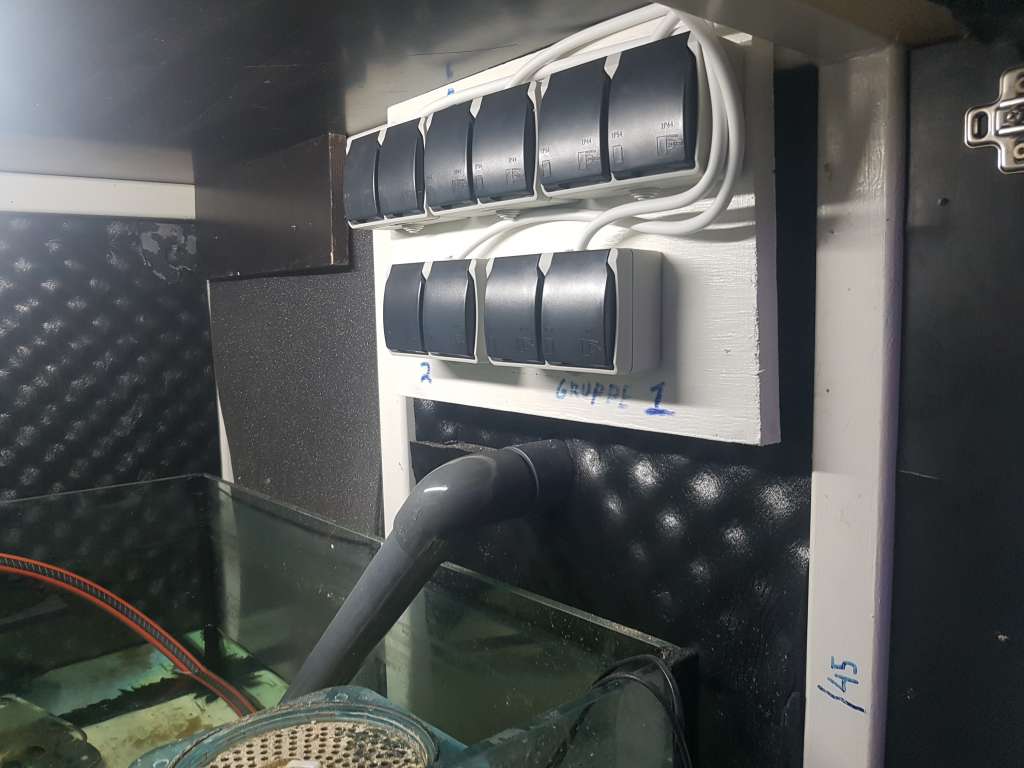 Der er 2 seperate grupper nederst, en til hver returpumpe. <br />Desuden 3 udtag til CO2, Kalkreaktor dosermaskine og ZeoLith ryster.<br />Der er desuden monteret LED lysrør i alle sumpe til arbejdsbelysning.