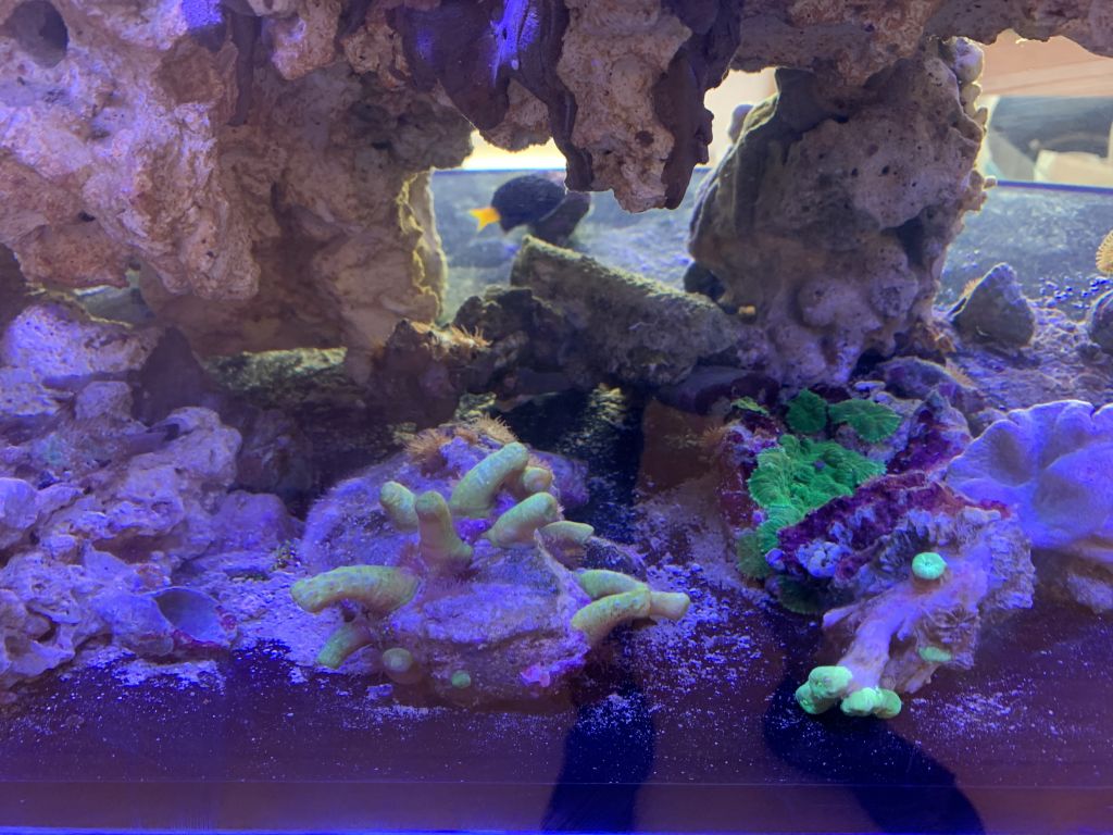 På den positiv side er akvariet på rette vej igen. Jeg ser en god vækst i korallerne og farver der bliver skarpere. Der er stadig alger på stenene men de bliver langsont skiftet ud med den rigtige sunde levende sten.