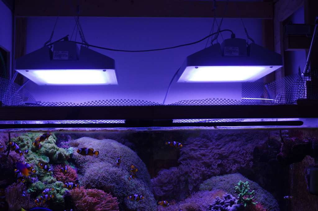 Jeg er virkelig glad for de lamper, og er spændt på at se, hvordan korallerne kommer til at udarte sig. Jeg programmerede dem til at give 75% lysstykre, men allerede efter et døgn, havde den brændt spidserne af mine seriatophora, så nu står de på 60 %. Jeg må indrømme at jeg aldrig før har prøvet at brænde spidserne af, og jeg har efterhånden prøvet et hav af lamper! Så de må give rigeligt lys!