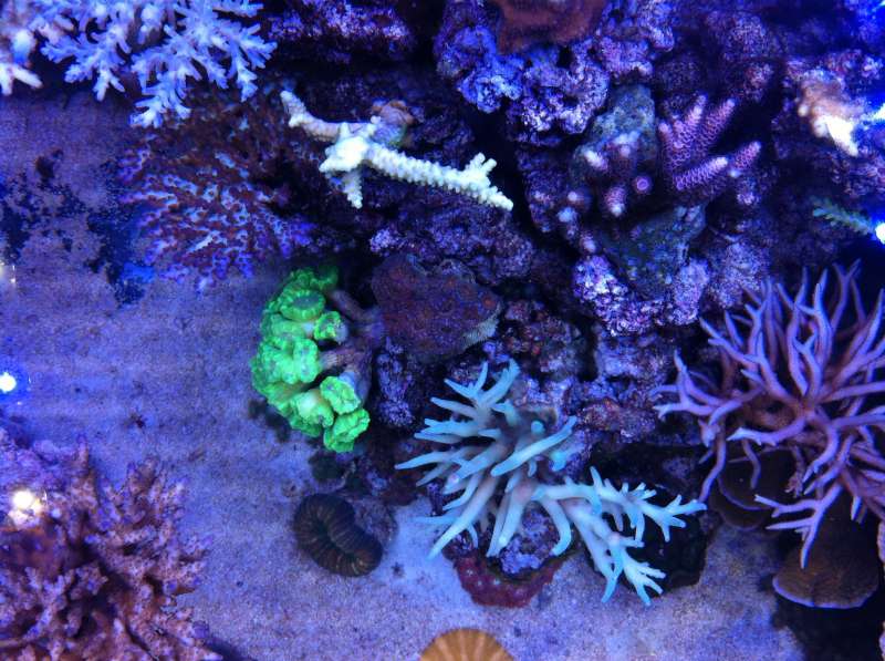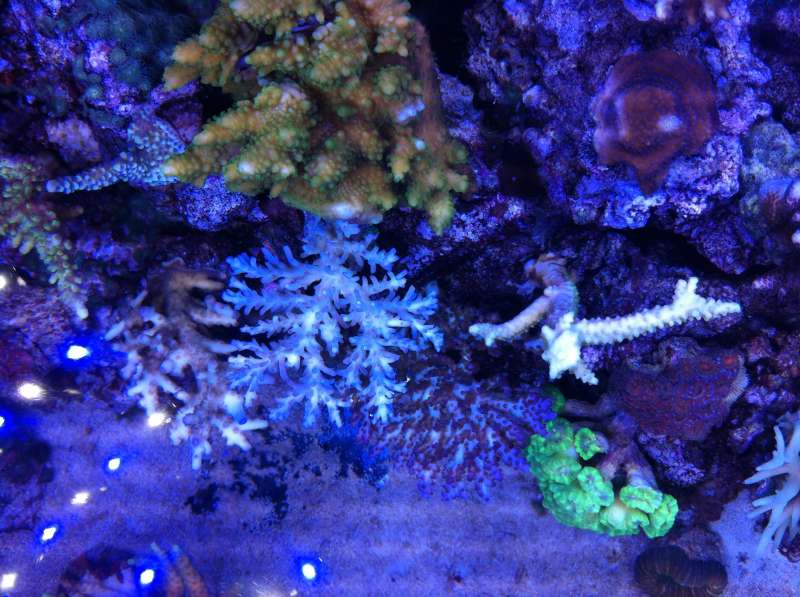 Lige en Update af de helt små. Mens vi prøver at blive enige om hvilken farve det nye gulv i stuen skal have er korallerne kommet i "farve pleje" i fragmenttanken og sumpen, der stadig kører.