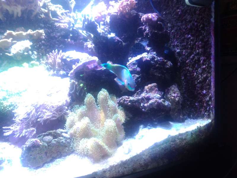 Dog så jeg at min Square Anthias i dag var syg. Den havde parasitter på sig og lå og gispede i overfladen. Ingen af de andre fisk fejler noget. Ikke engang paletten har det mindste tegn på parasitter. Aner ikke, hvad der kan være sket???