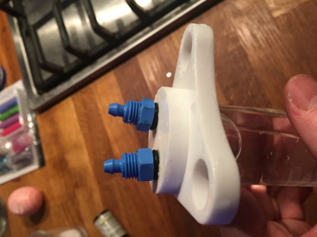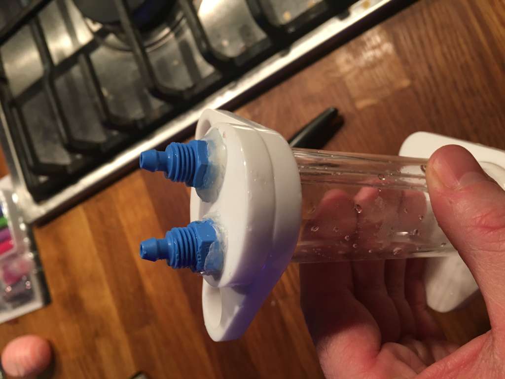 Når men nu tror jeg satme det lykkedes med hjælp fra teflon bånd. Jeg fik plads til det i skabet og bobletæller er ikke længere helt fyldt med vand og det er hele bobler der kommer ud af røret. Tror grunden til at jeg oplevede at bobletælleren blev fyldt med vand samt mikrobobler, var at der blev suget falsk luft med ind da det jo ikke var tæt. Jeg krydser i hvertfald finger nu og begynder at fin justerer.