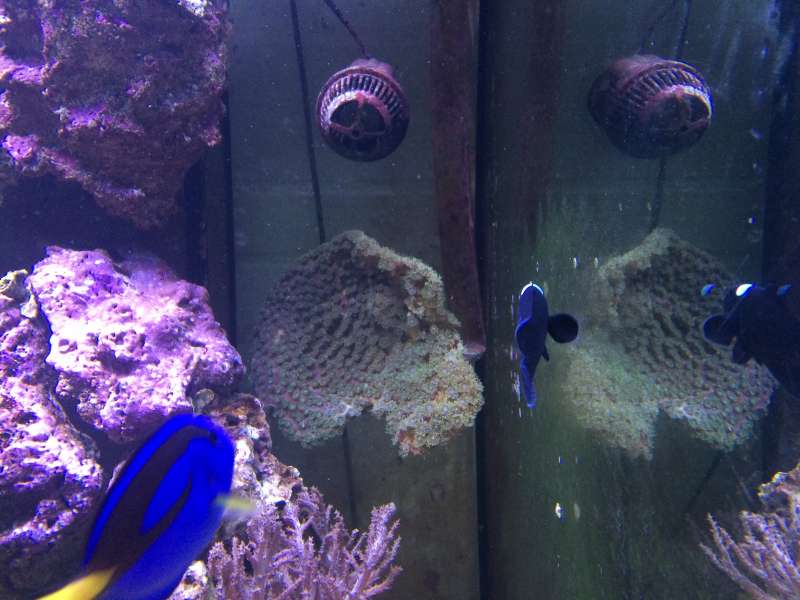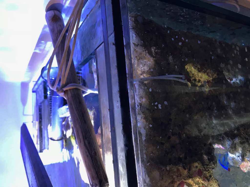 Det ligner lort efter det har stået et år uden vandskift eller ruderens men Skiveanemoner søpindsvin søpølser snegle slangesøstjerner og Halloween eramitter har klaret det fint og jeg tænker på om det har hjulpet men de 25cm bundlag i akvariet og mudder i sump.
