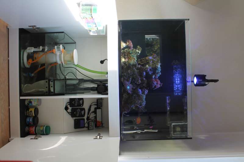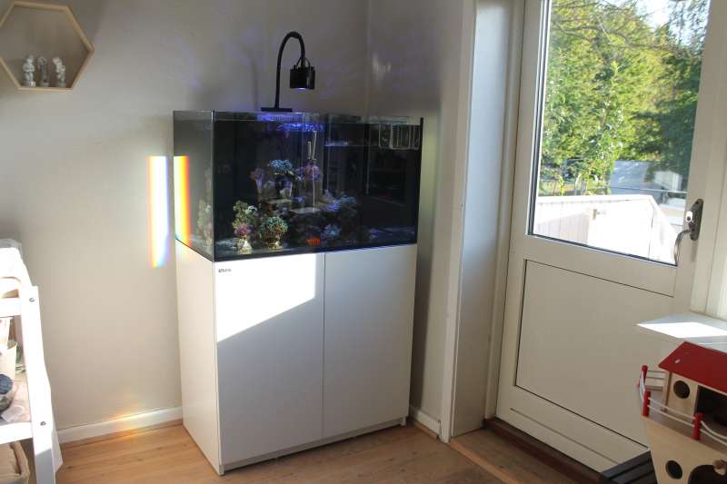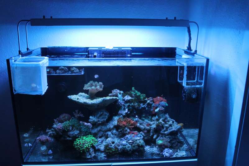 Fordelen er nu at jeg ikke mister begge lightnings ved et crash. Og det lille nanoakvarie vil jeg kunne flytte hjem til en anden akvarist, hvis jeg skal på ferie eller væk i længere tid. Det store akvarie kører automatisk med Apex, så det kan godt passe sig selv.