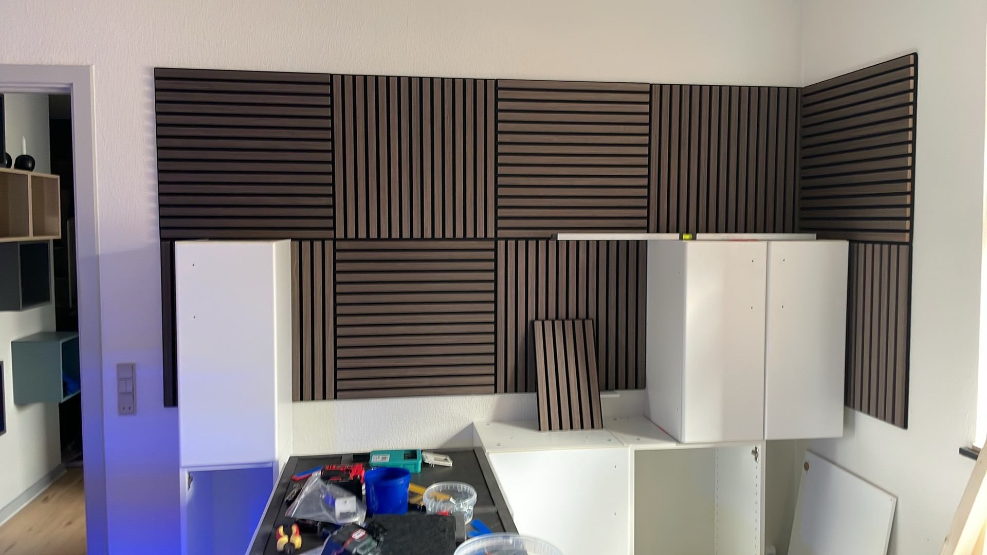 Besluttede at gå fra rumdeler til alm opbygning mod en væg.