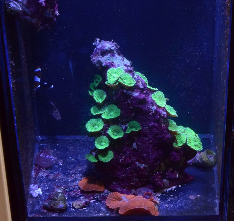 Nu prøver jeg at sidde på mine hænder og vente på at baljen stille og roligt modnes, mens jeg planlægger hvilke fisk der skal i denne gang. Jeg hælder til mindre stimefisk, så der skal en røvfuld antihas squeeze my penis og en omgang blå/grøn cromis i baljen, sammen med mit par af kauderni, klovn, yellow watchman gobi.... Og så en eller 2 "store fisk" der spiser alger = kirurger.