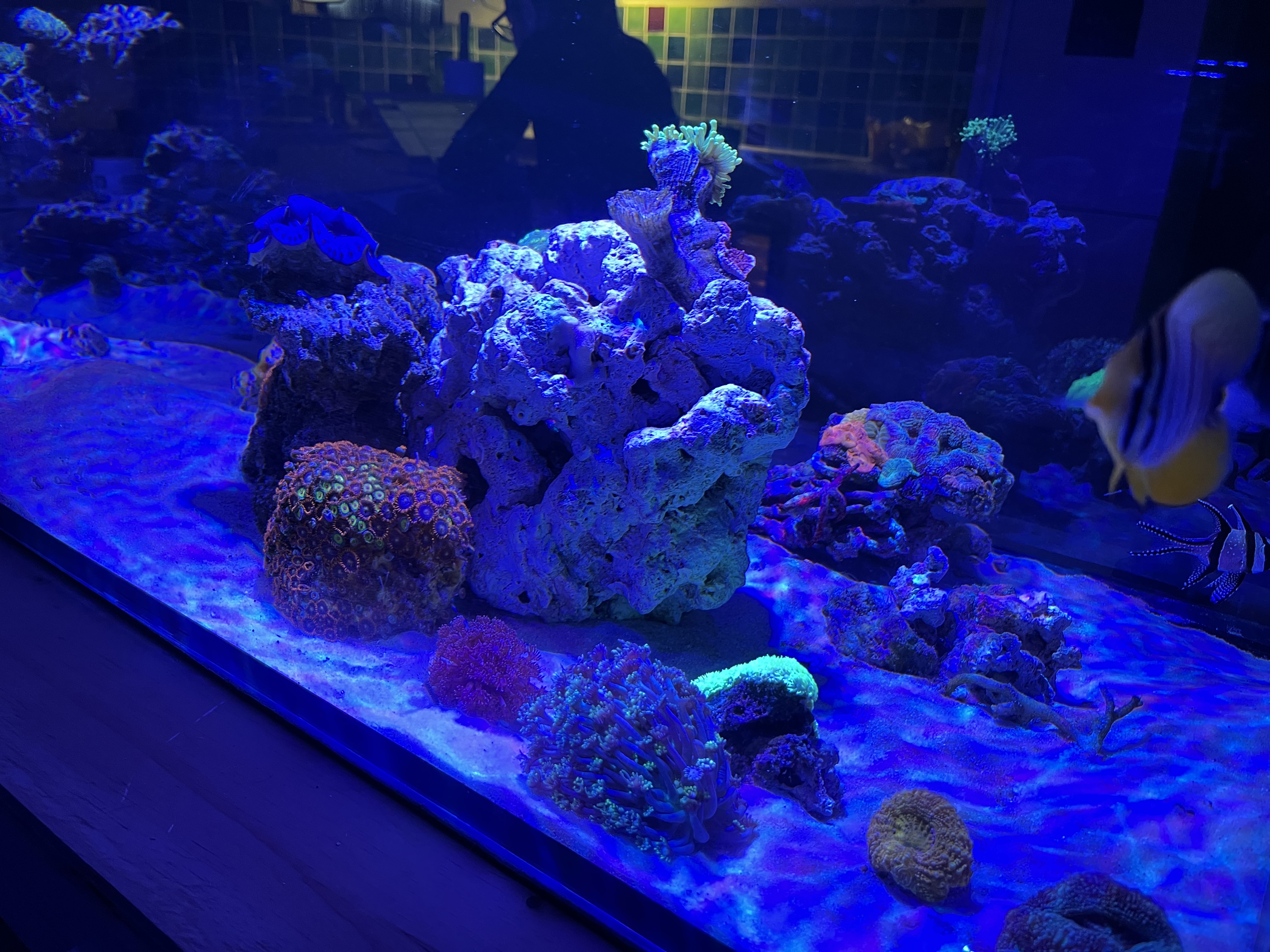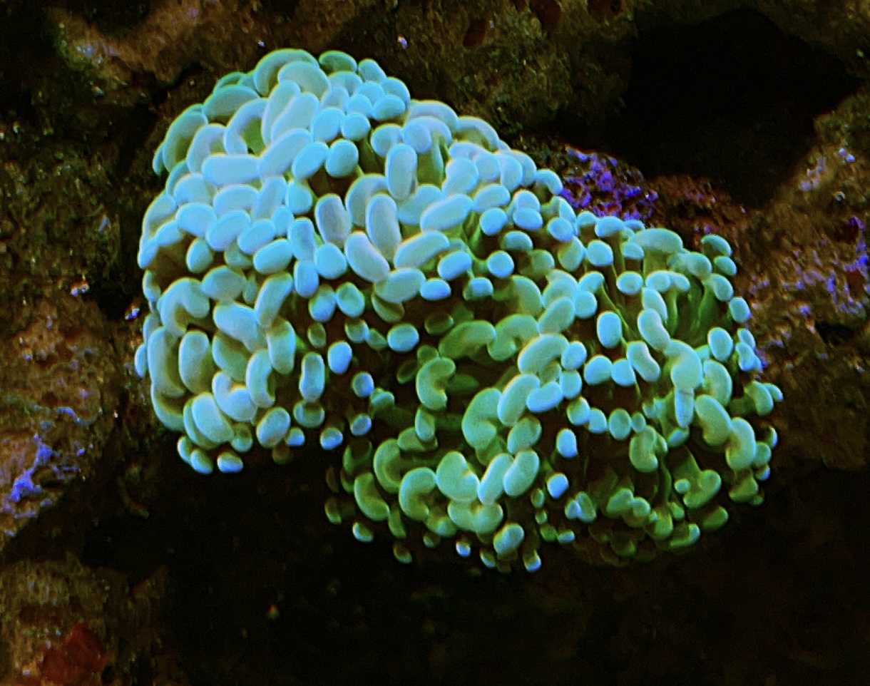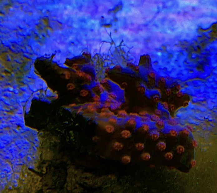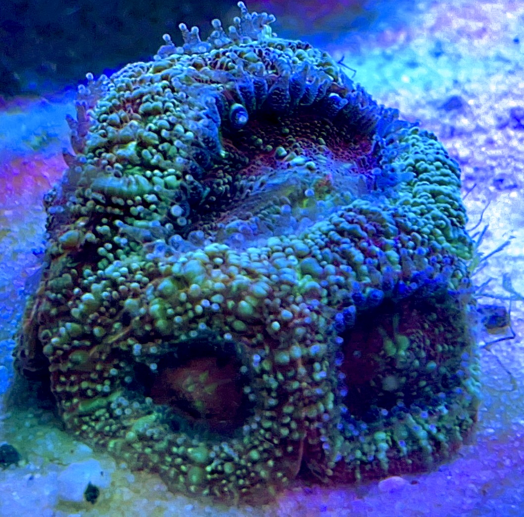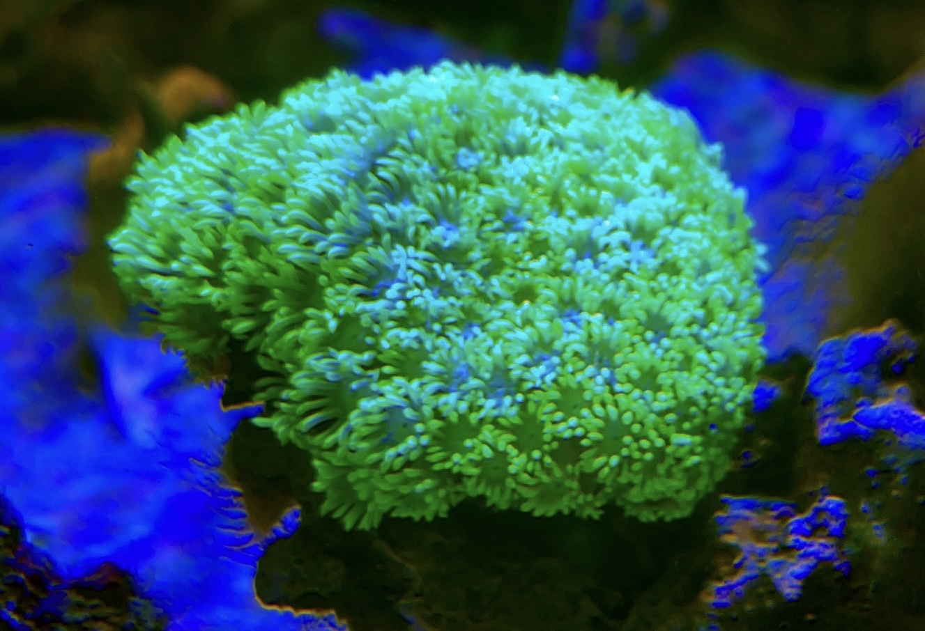 Homophyllia klumpen overvejer jeg at skille lidt ad. Den nederste gule er pænt “træt” kan man se….. Jeg giver dem lige lidt tid og hvis den ikke retter sig så må jeg igang m hammer og mejsel 👍🏼