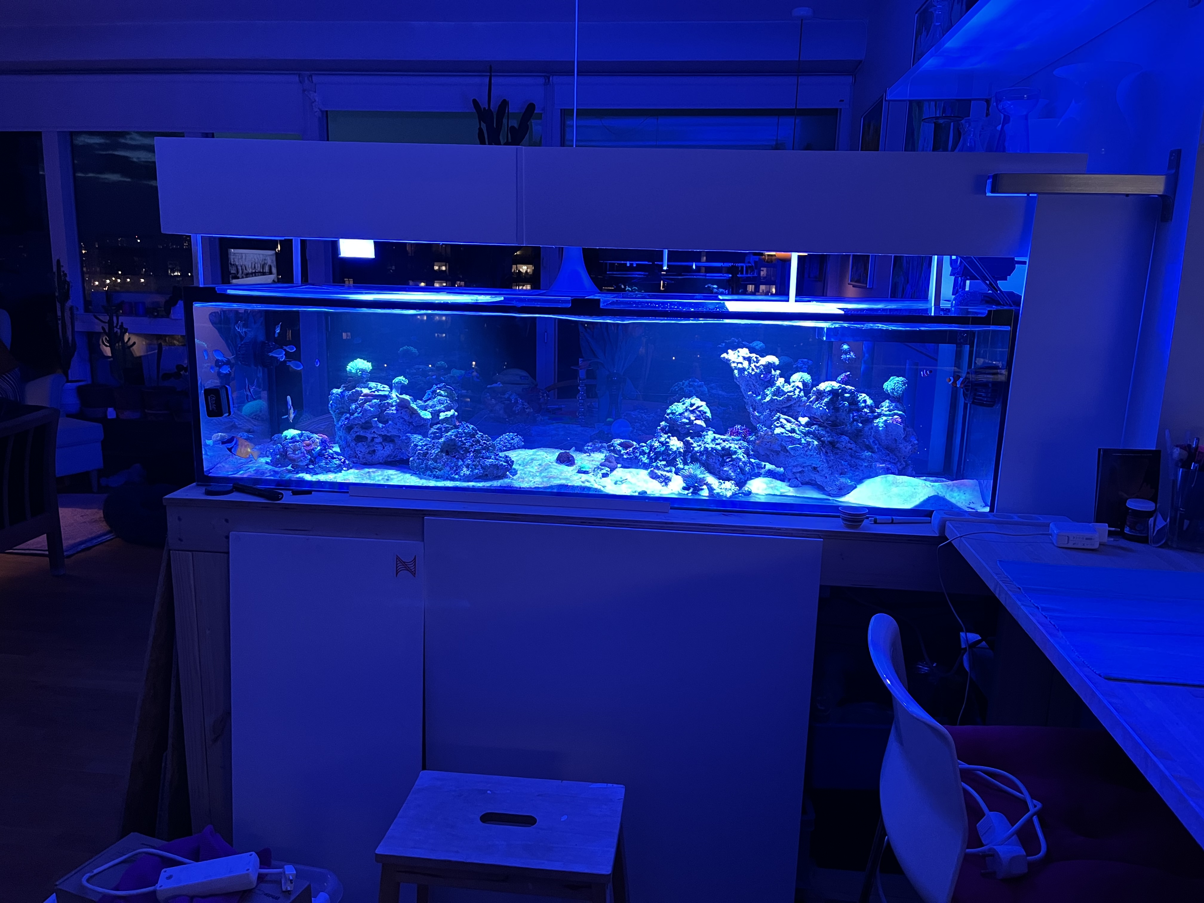 Mine gl ecotech rx15 og 30 gen 4 lamper. De giver rigeligt lys til de lps jeg vil have i dette akvarie. De kører pt på 60 %. Jeg har en gl. kessil lampe liggende som jeg overvejer at sætte op, og lave en "spot" effekt med.... Dont know yet..