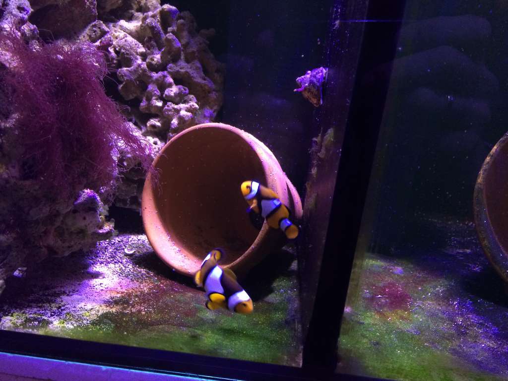 Et par a. ocellaris, som tidligere har lagt æg. Planen er at de skal i noget større, men indtil da må de hygge sig i sumpen.