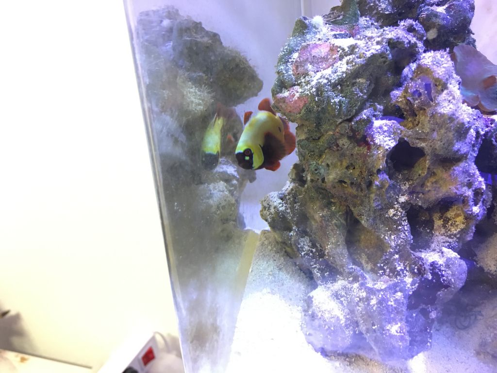 Jeg er ved at opsætte et eksternt refugium, hvori der skal være alger, dyb sandbund og en masse levende sten. Det skal hjælpe til at forbedre vandkvaliteten hos klovnene og skaber samtidig n mulighed for at beholde mit søpindsvin og min lille eremitkrabbe.