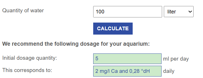 Så hvis dit akvarie var 100 liter, skulle du dosere 14.9 dkh. Men du har jo 650 liter.