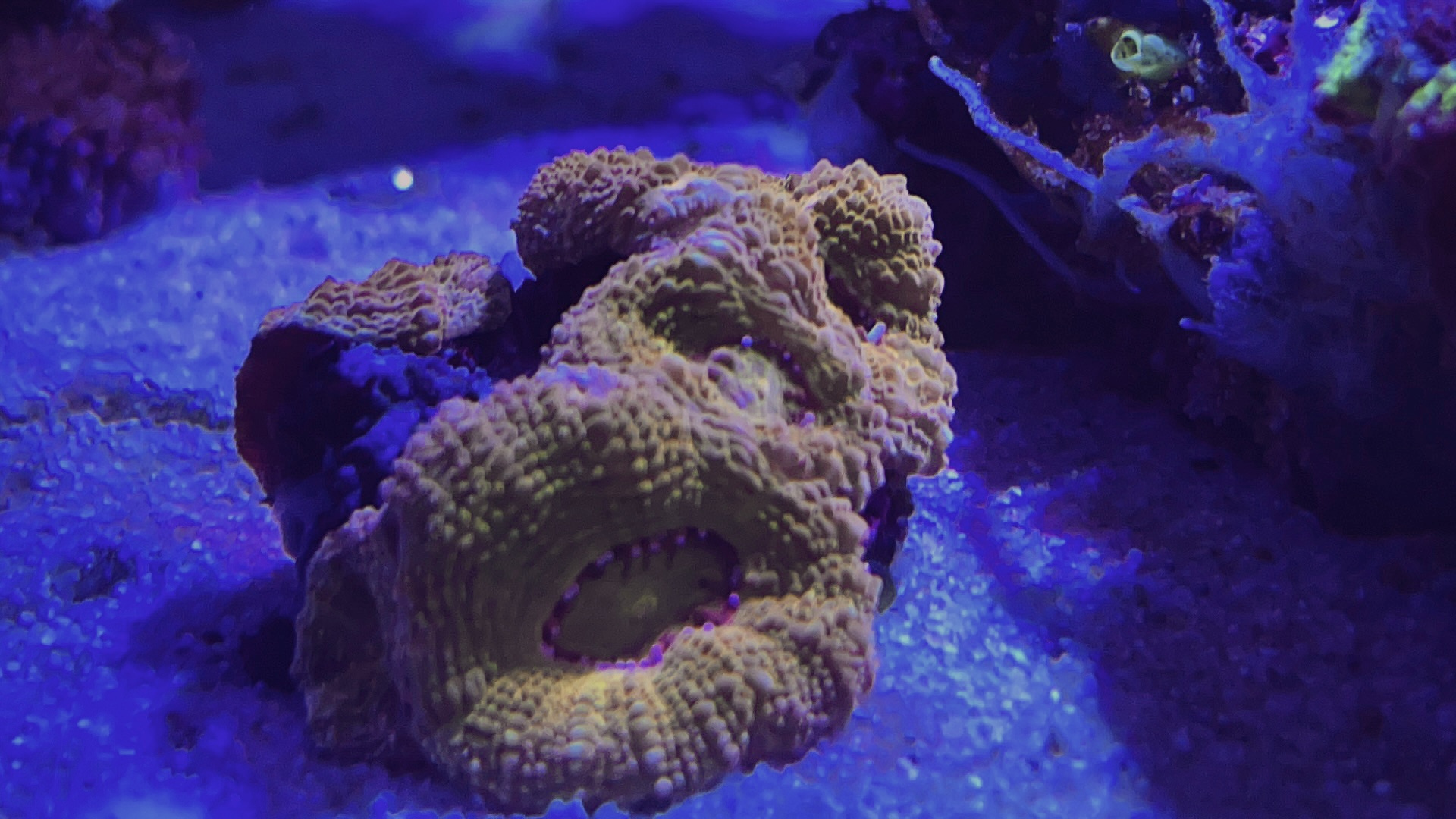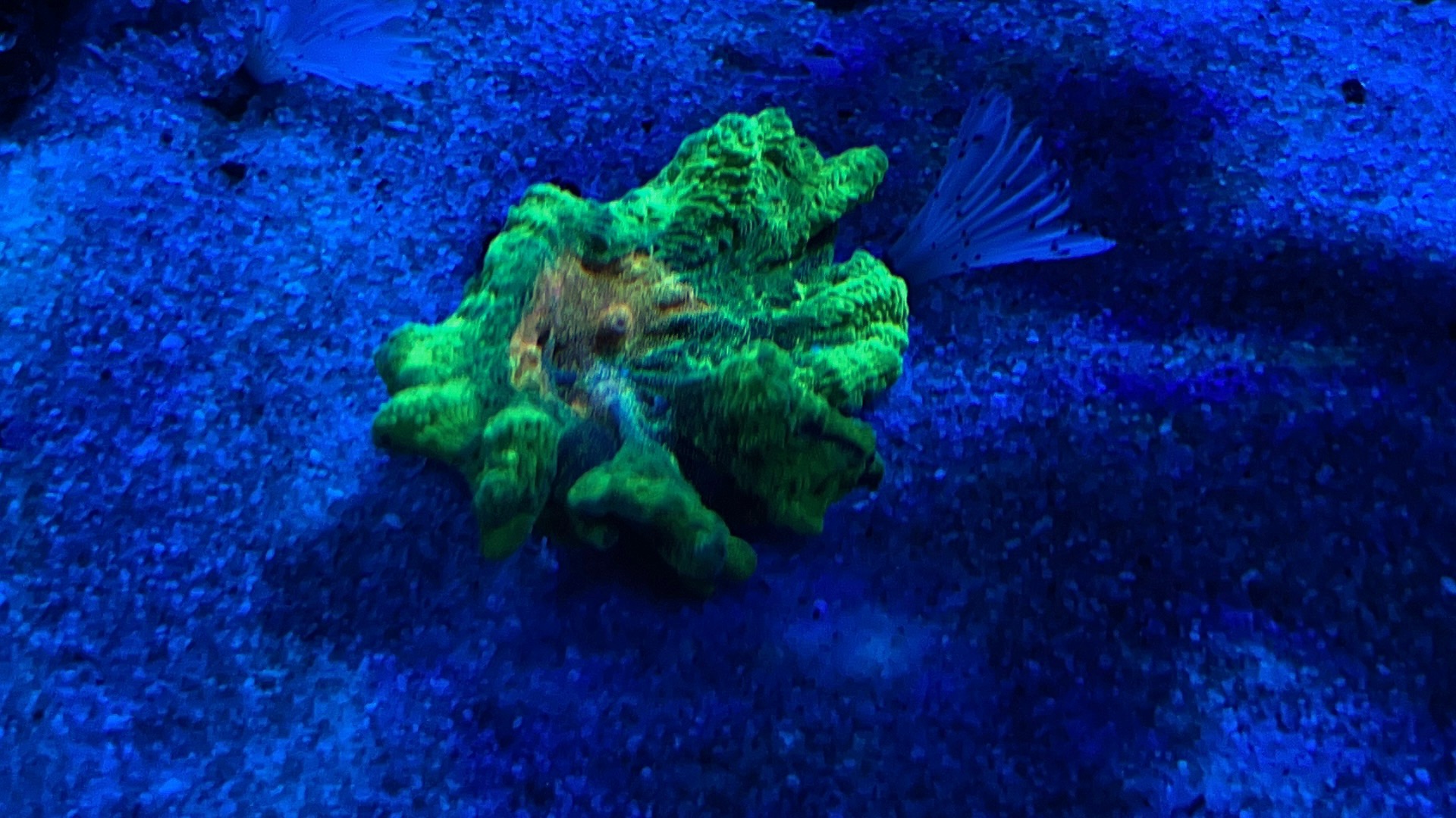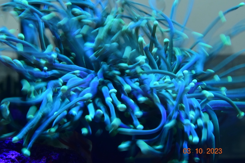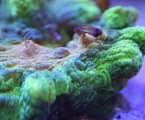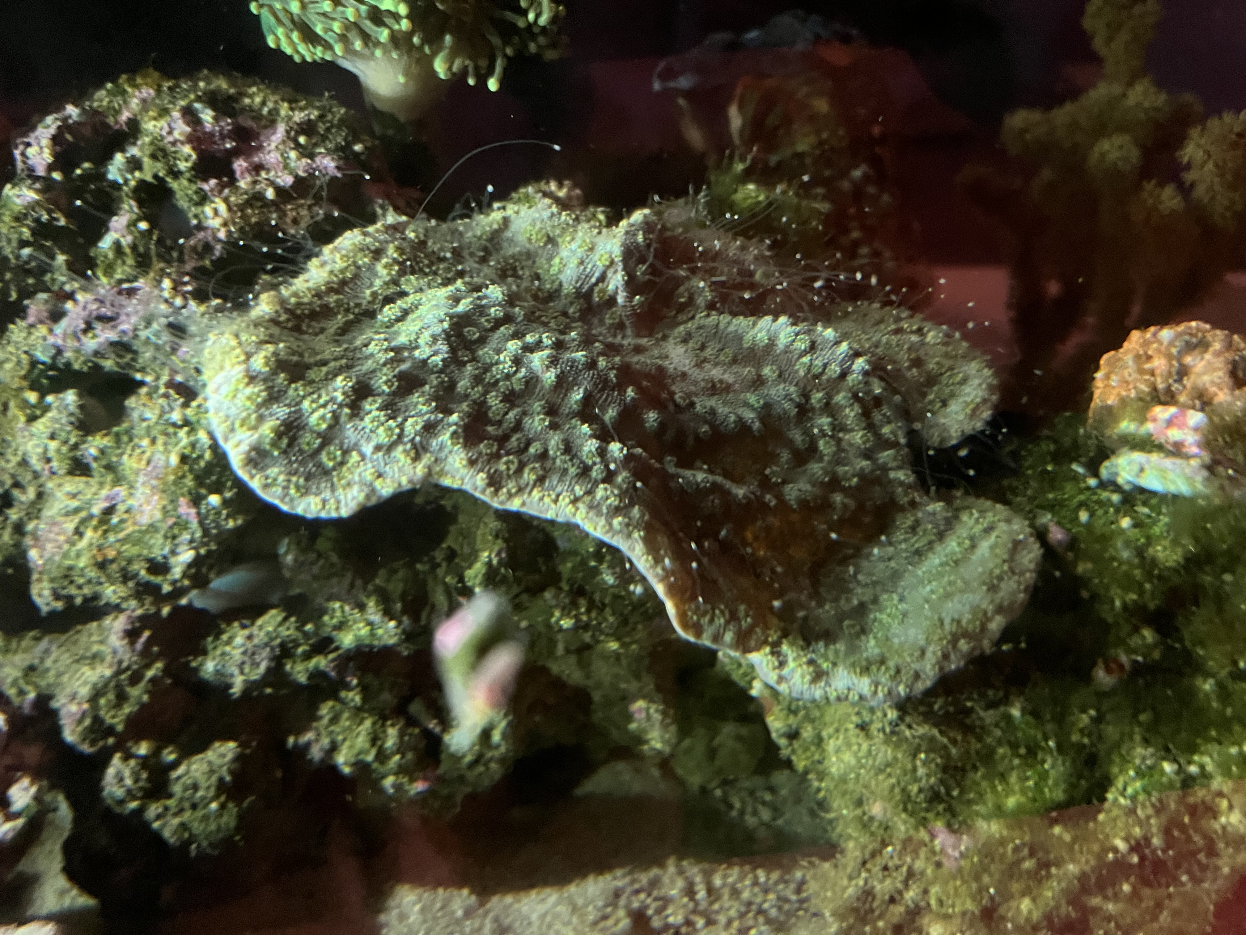 Røgen har lagt sig efter jeg fik fanget “Olivia” ind og afleveret hende ved Dan igen. Så nu begynder homophyllia at blive en smule “fleshy” igen. De reagerer desværre ikke ret meget på foder endnu (det gjorde de BIG time, før sommerferien) Håber det snart kommer igen