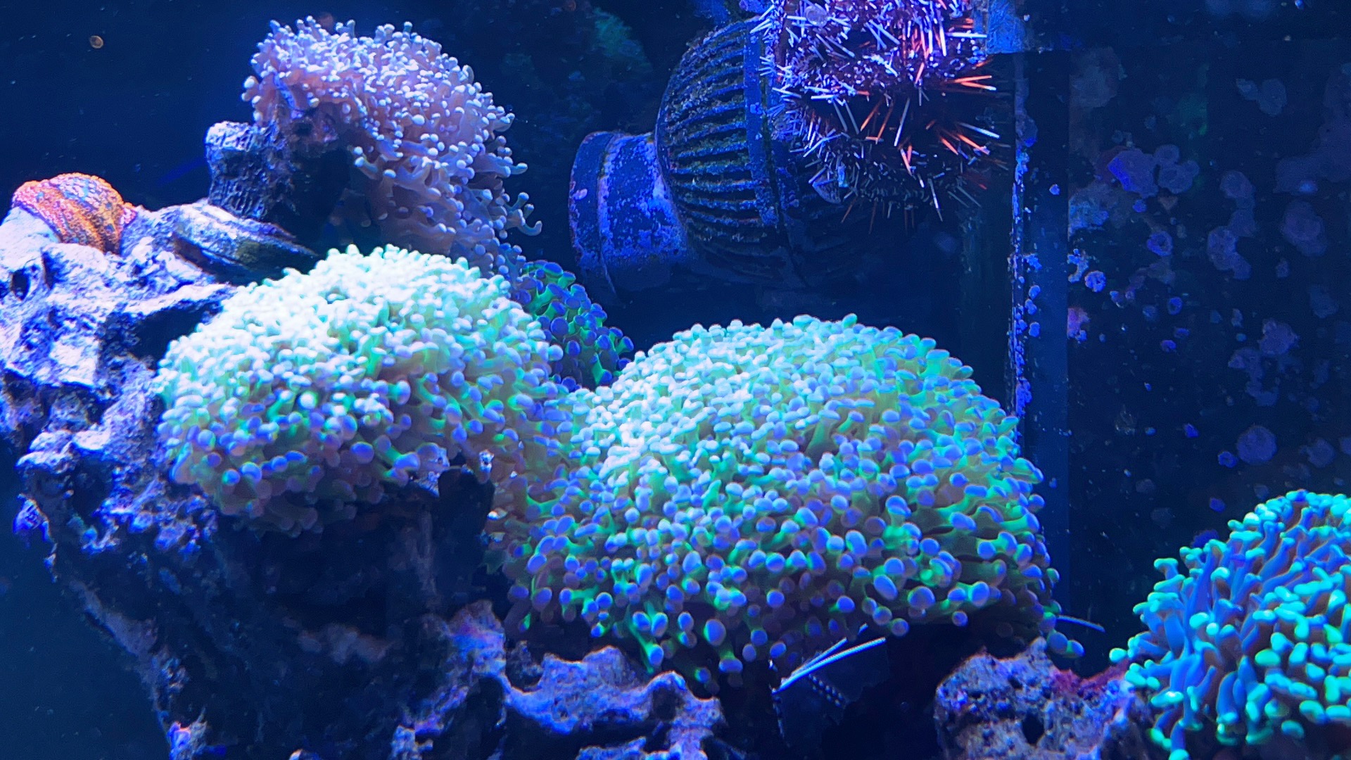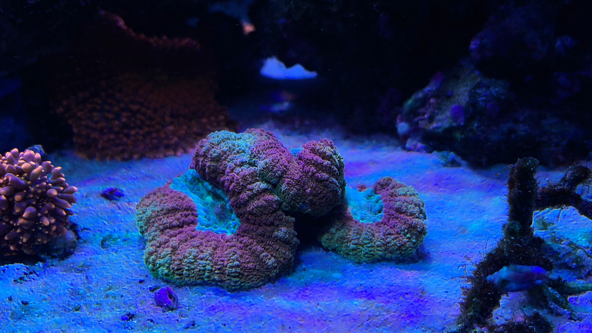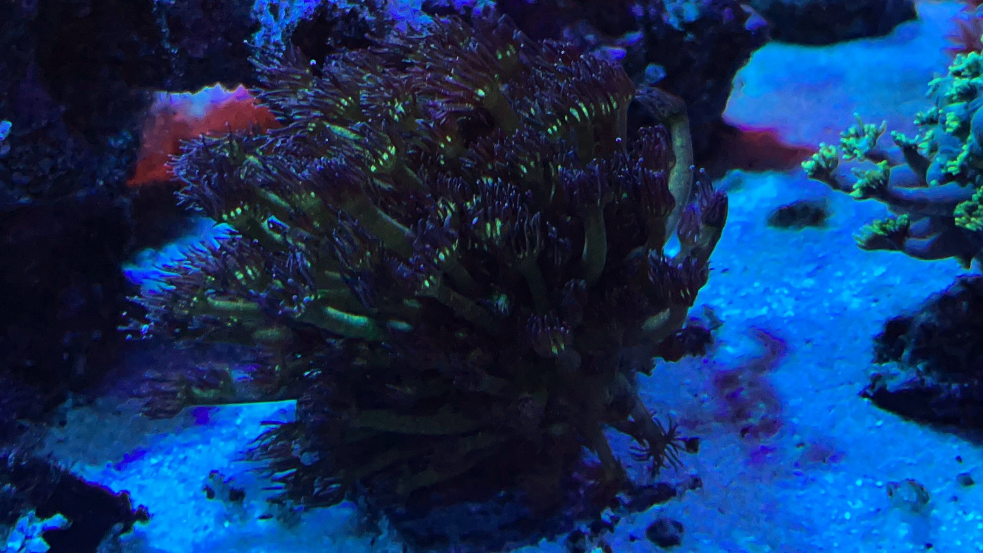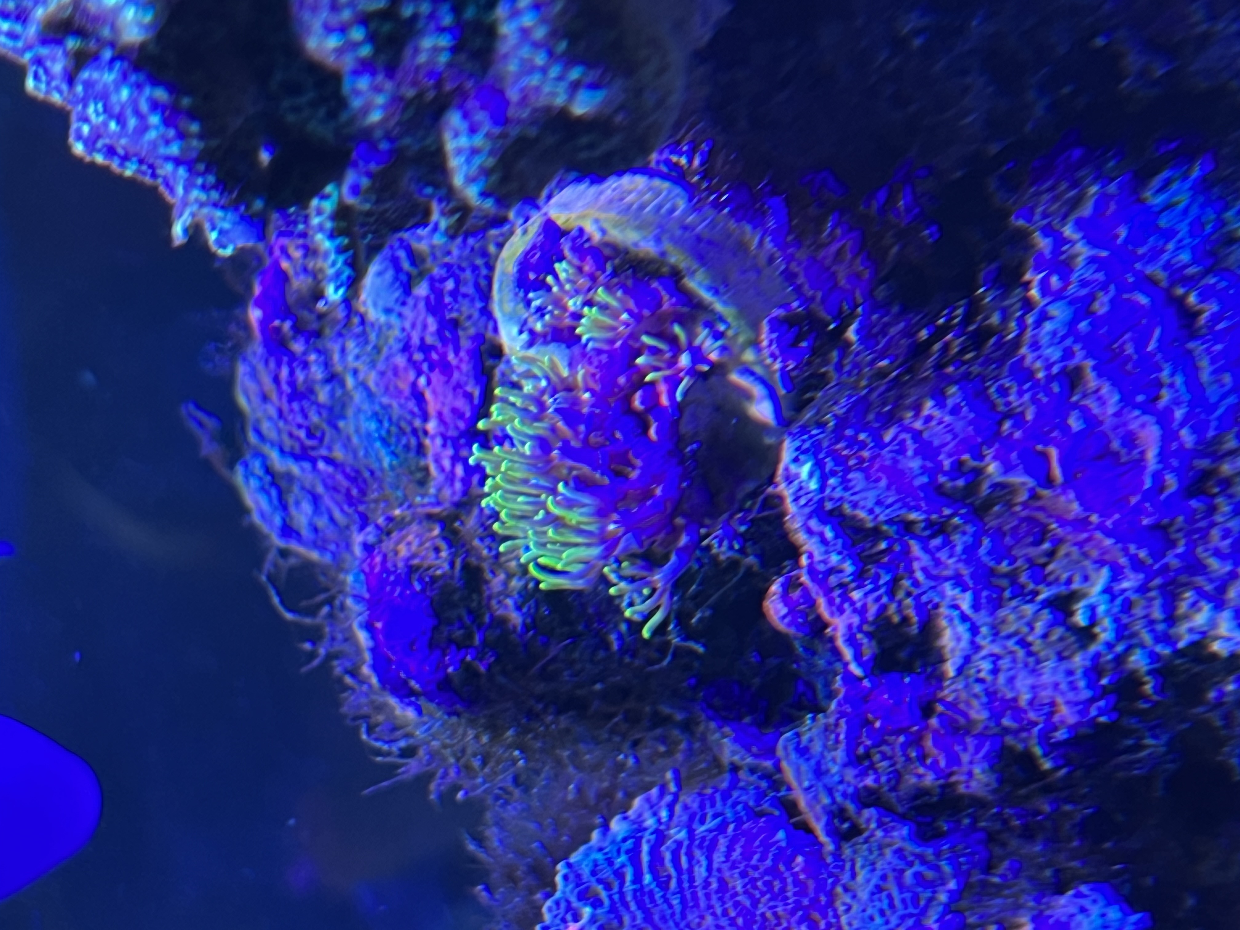 Røgen har lagt sig efter jeg fik fanget “Olivia” ind og afleveret hende ved Dan igen. Så nu begynder homophyllia at blive en smule “fleshy” igen. De reagerer desværre ikke ret meget på foder endnu (det gjorde de BIG time, før sommerferien) Håber det snart kommer igen