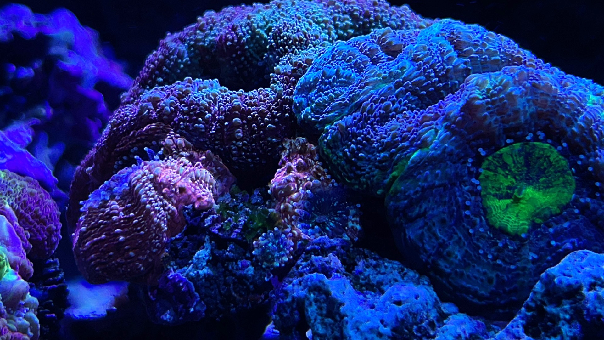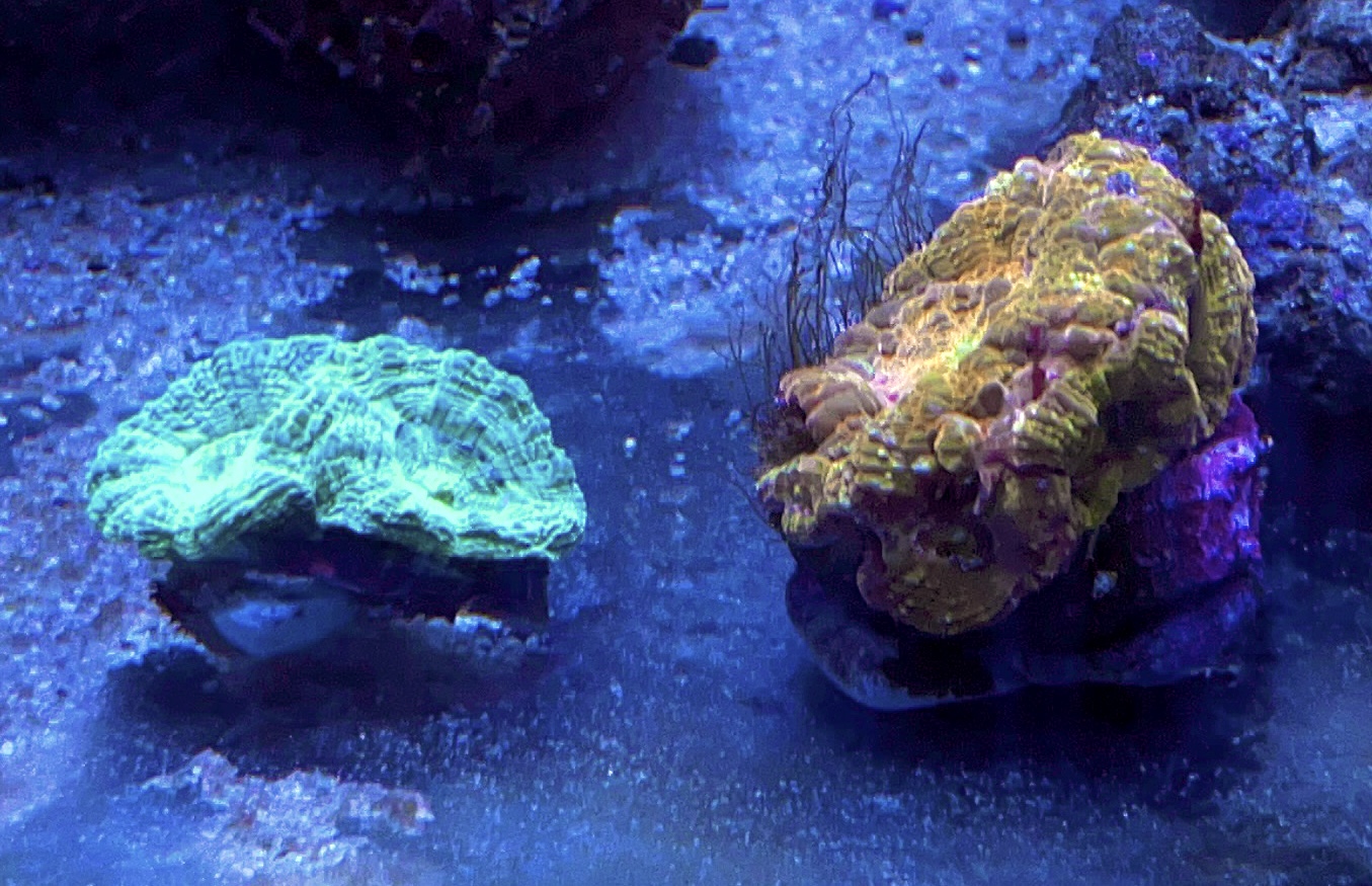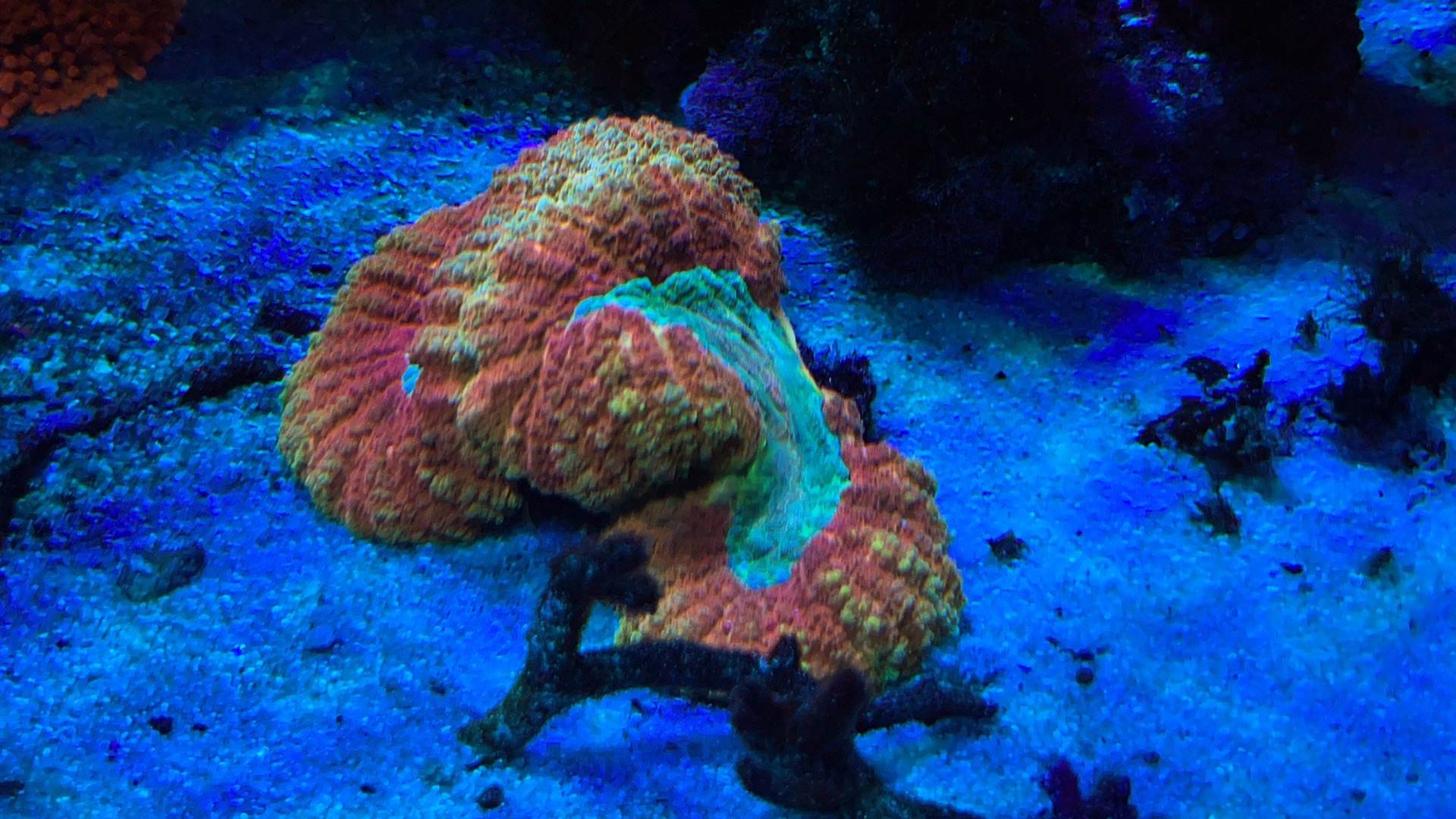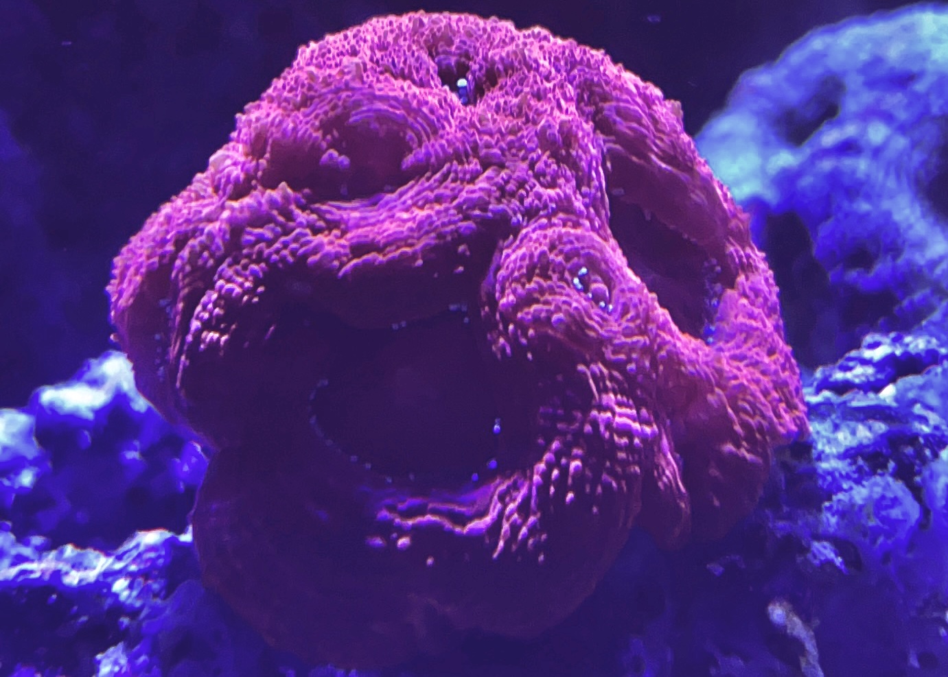 Røgen har lagt sig efter jeg fik fanget “Olivia” ind og afleveret hende ved Dan igen. Så nu begynder homophyllia at blive en smule “fleshy” igen. De reagerer desværre ikke ret meget på foder endnu (det gjorde de BIG time, før sommerferien) Håber det snart kommer igen