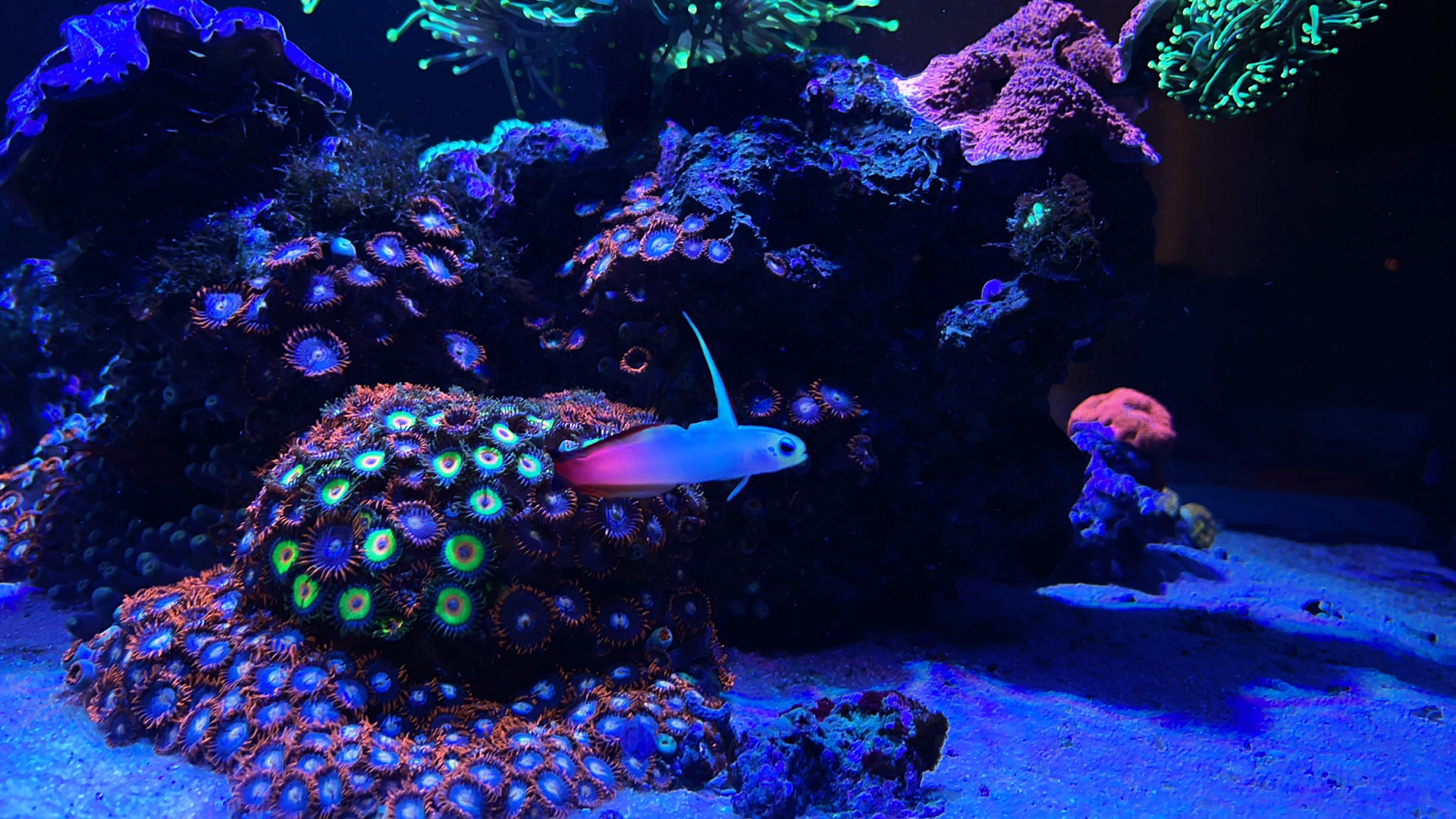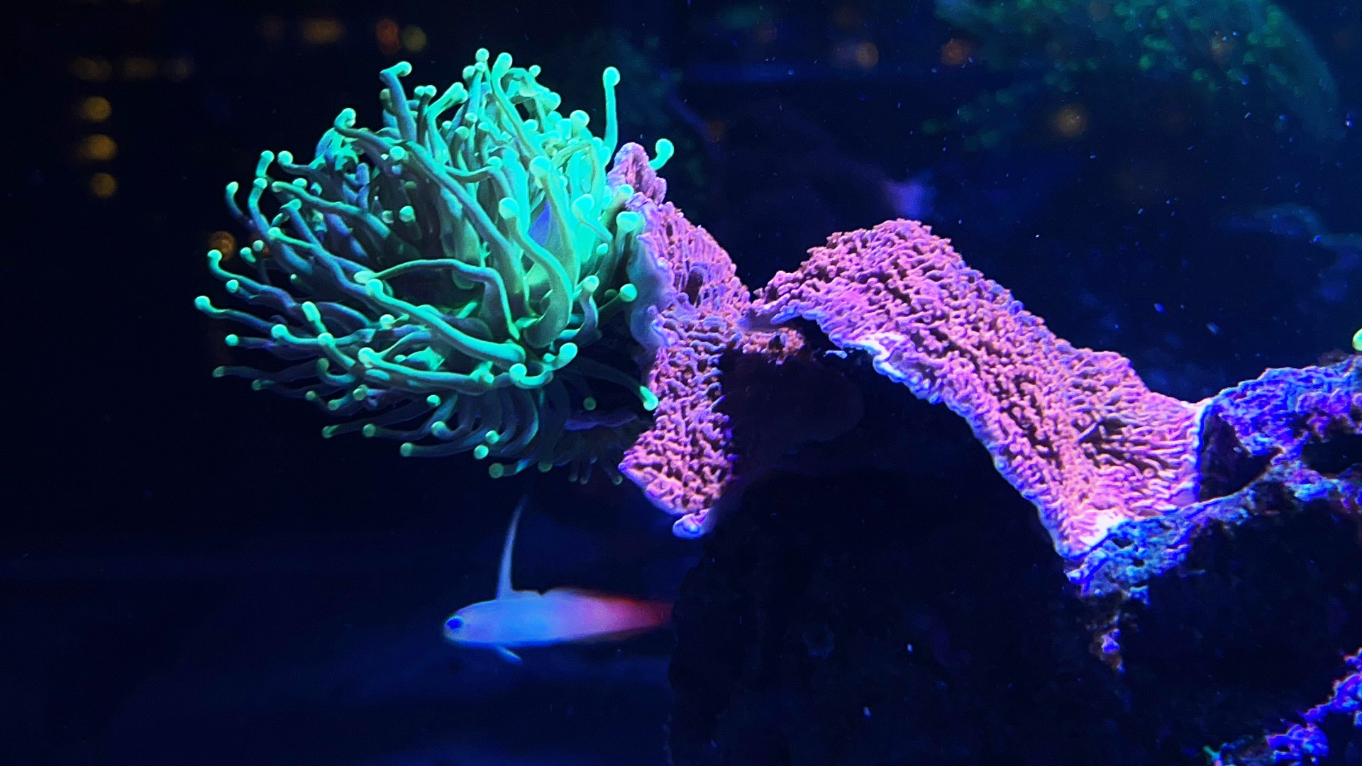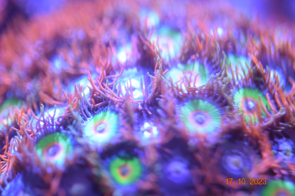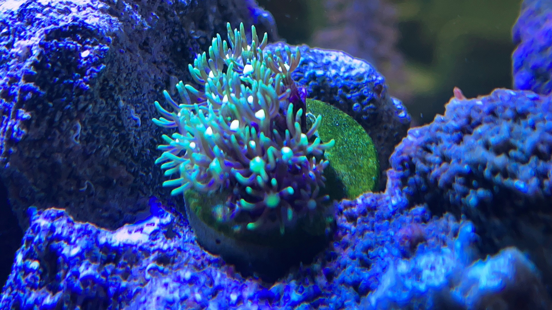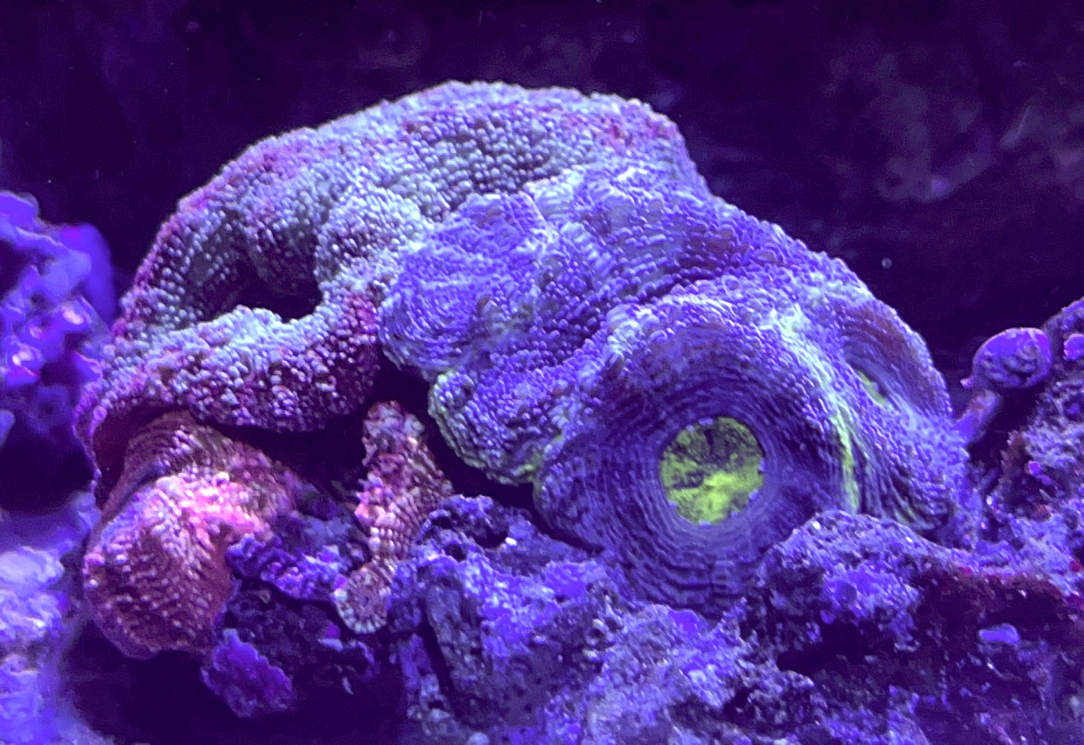 Røgen har lagt sig efter jeg fik fanget “Olivia” ind og afleveret hende ved Dan igen. Så nu begynder homophyllia at blive en smule “fleshy” igen. De reagerer desværre ikke ret meget på foder endnu (det gjorde de BIG time, før sommerferien) Håber det snart kommer igen