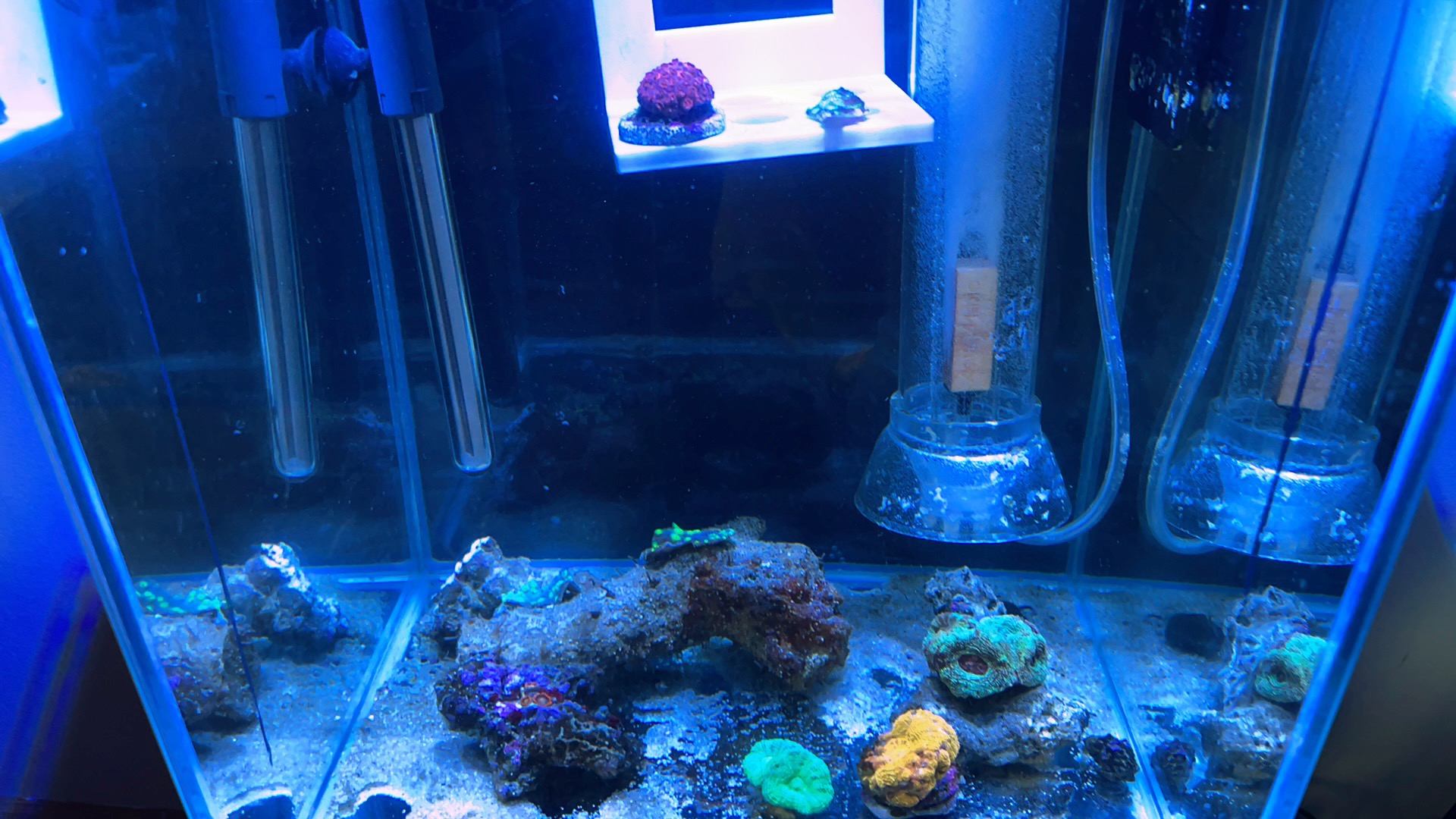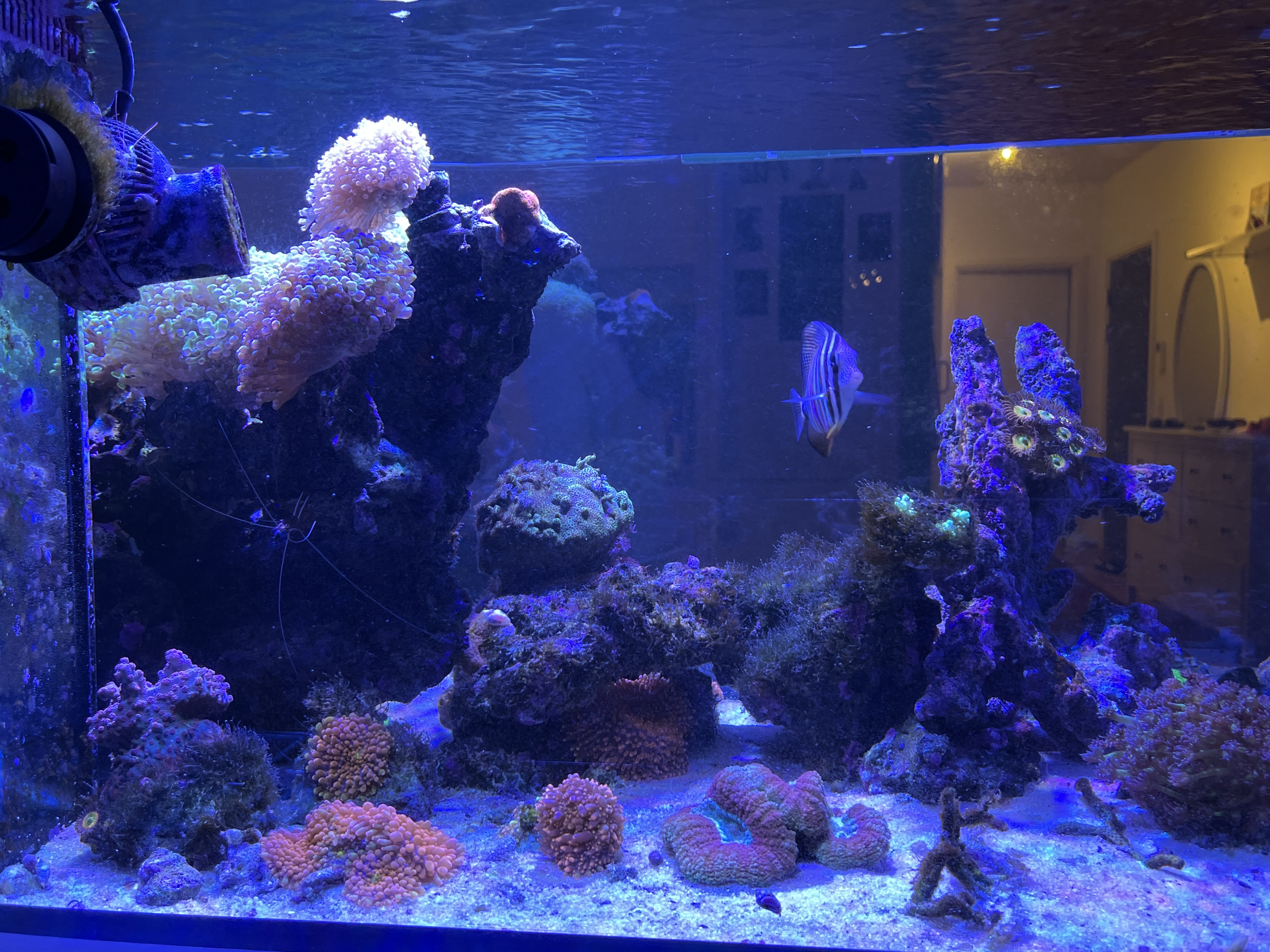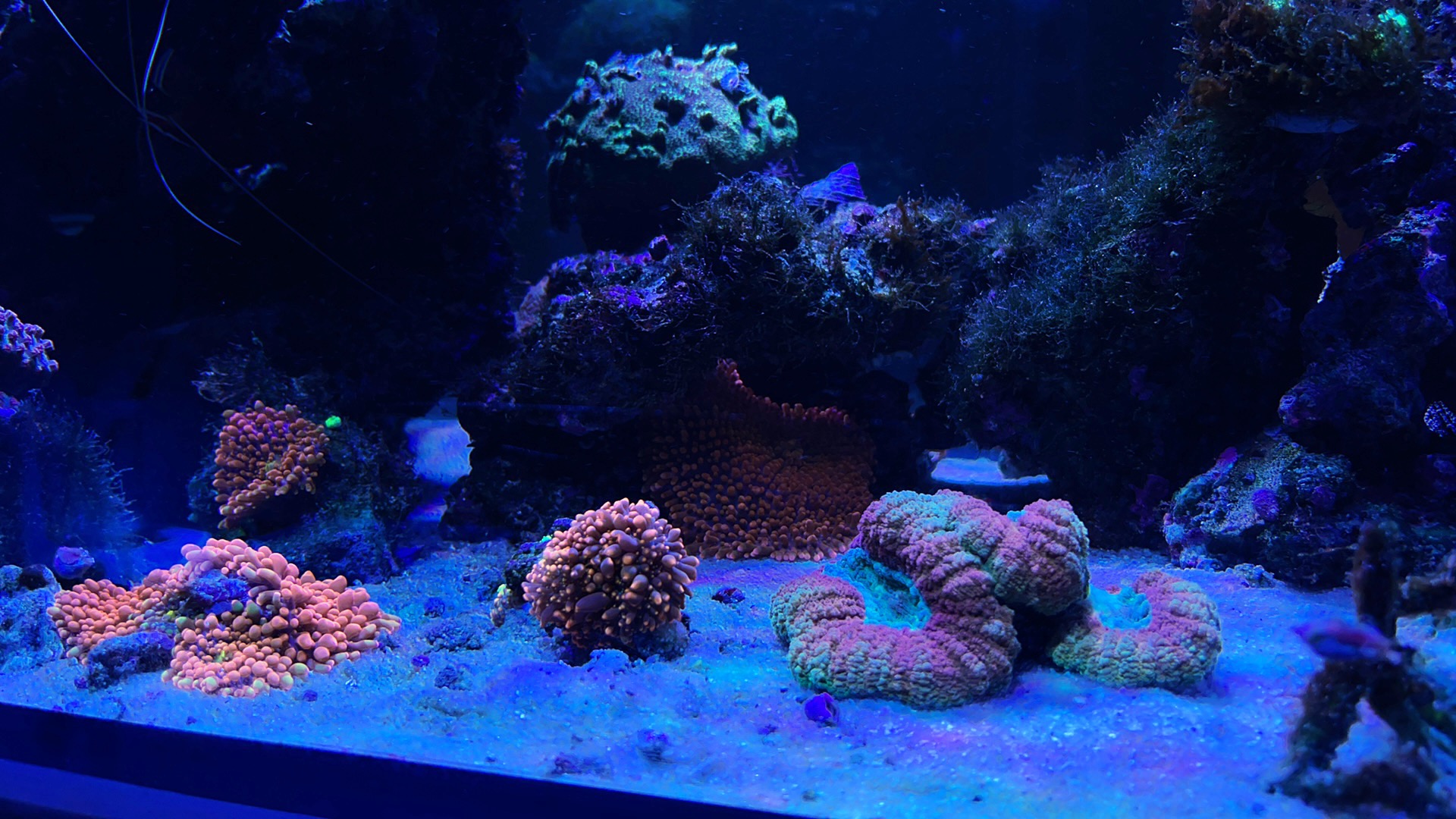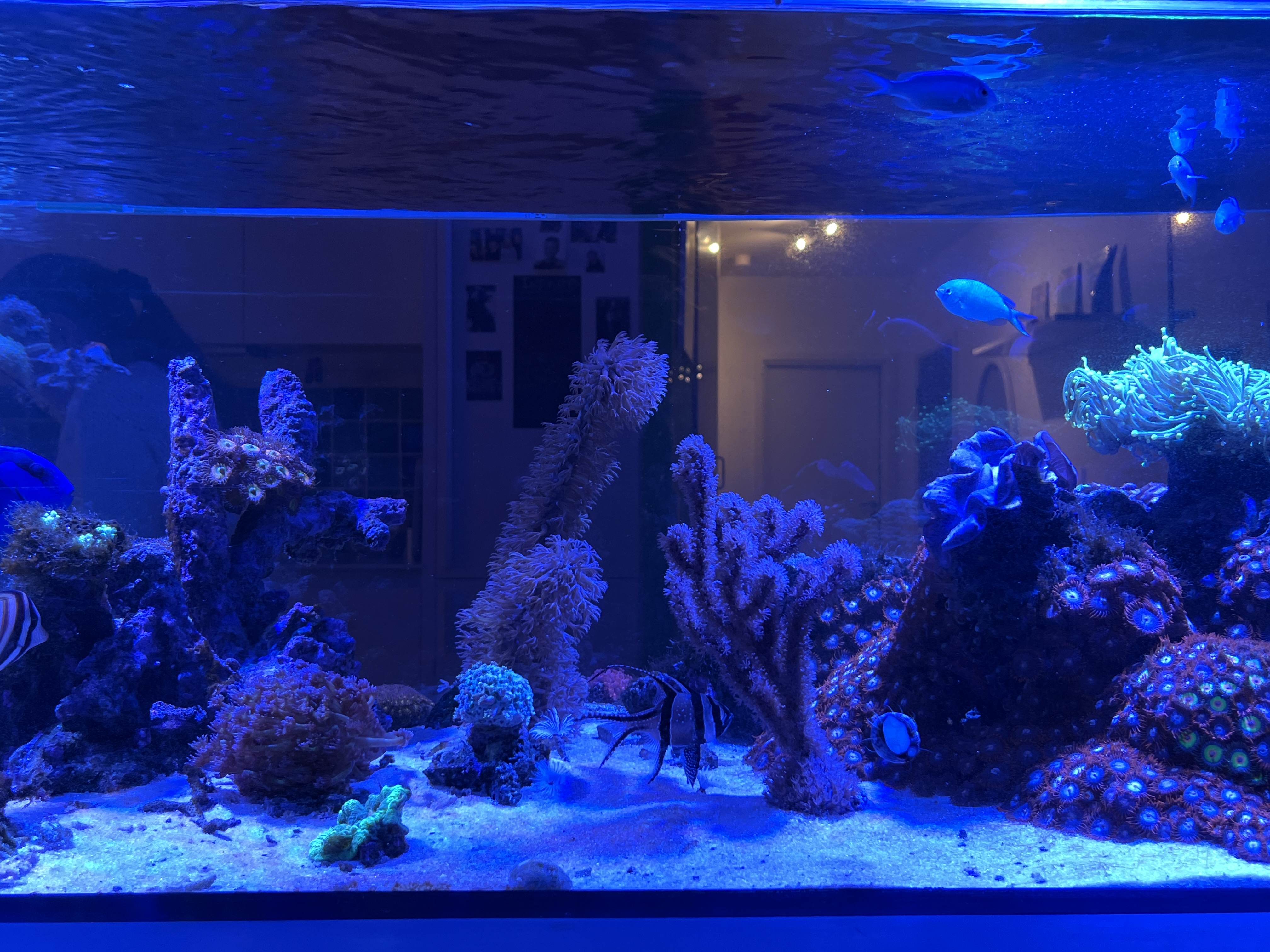 Har skruet 5 % mere op for lamperne, så nu er den store lampe på 65 % og den lille på 85% når de kører Max. (2 stk ecotech pro. Gen 5. En 15’er og en 30’er).