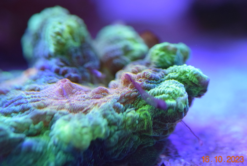 En sjælden gang i mellem fodre jeg lobo, ell traco -phyllia (aner stadig ikke hvad det er) og alle homophyllia med “coral pearls”… de minder om fiske pellets, lidt blødere og