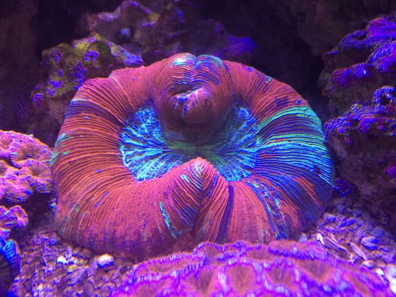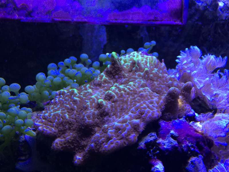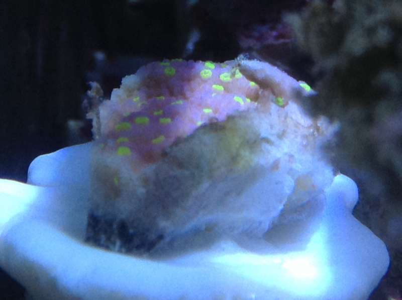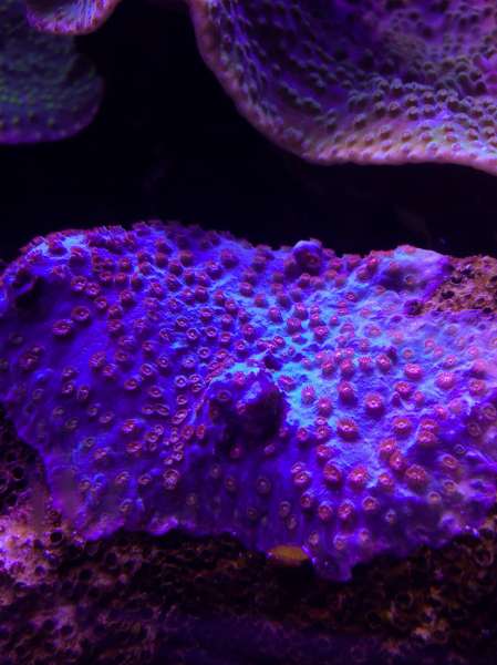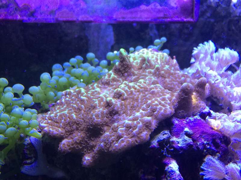 Forleden sad jeg og kiggede her på siden og så en motipora plade som mark her fra siden postede, den var gul med lilla polyp og så gik jagten igang og idag kom så min nye koral men den er så modsat af den mark postede og noget mindre.