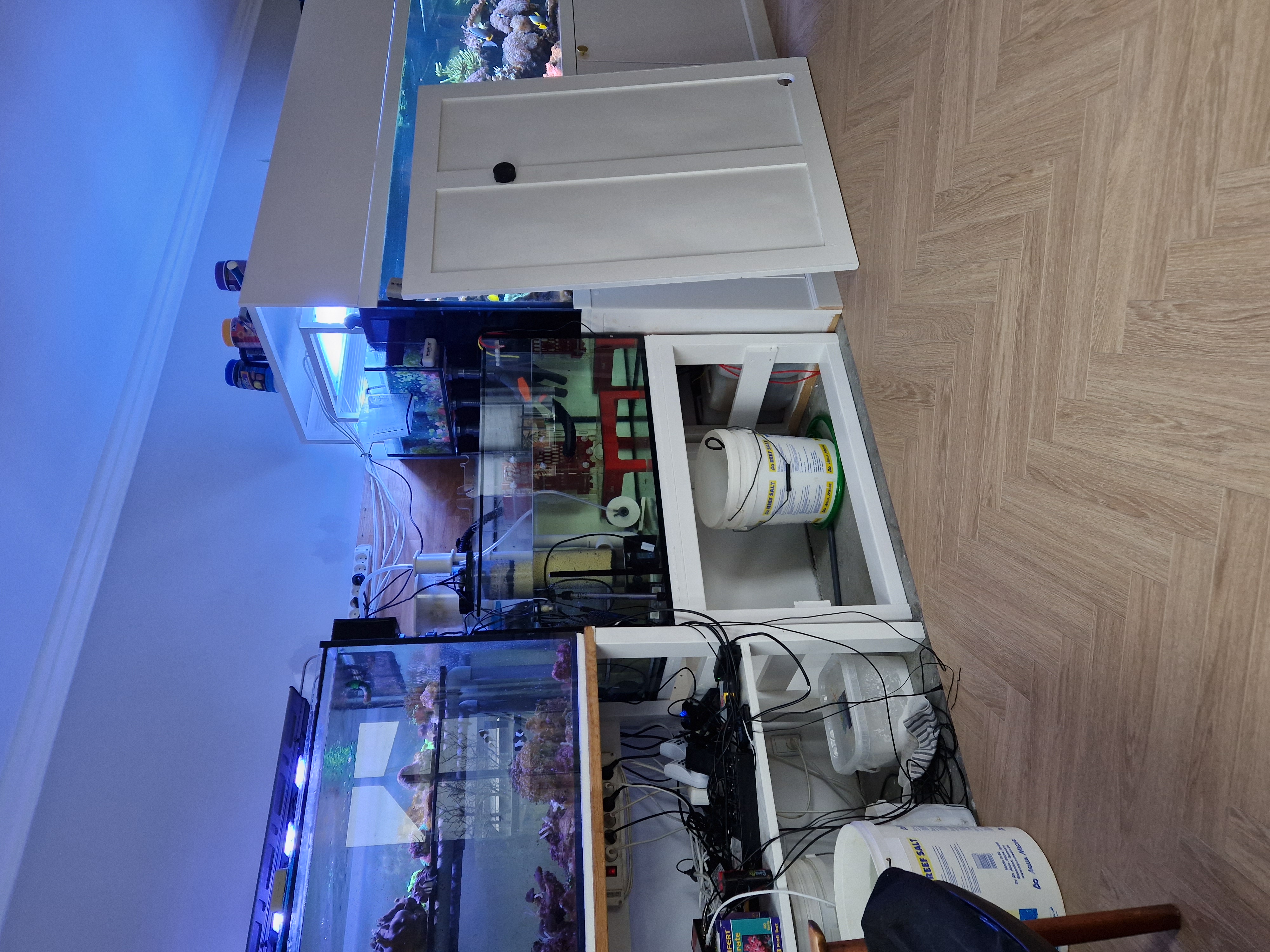 Selve skiftet tog fra kl 10 til 21 sidste lørdag. Alt drillede. Gennemføringer skulle skæres og gik i stykker, slange knækkede, top-off pumpestik knækkede, mit top-off akvarie på 160 liter blev stødt og flækkede - mit bord var ikke kraftigt nok og skulle forstærkes med reglar fra akut tur til Hjem og Fix.