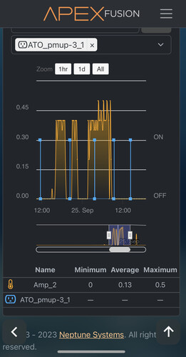 Apex ATK er meget stabil og pålidelig! Den larmer lidt når pumpen køre, men der er så mange fede funktioner du selv kan indstille. Fx hvor længe skal den kører når den kører, hvor længe må den kører hver gang den kører…. (På den måde kan man jo selv bestemme hvor meget vand den hælder i baljen) … Hvor længe skal der minimum være mellem hver kørsel…. Du kan i output se hvor mange gange i døgnet den kører og får derfor ret hurtigt styr på hvad forbruger er osv osv osv. Her er kodningen på min pt.